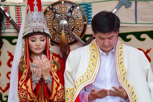 在哈萨克斯坦,贝塔莎(Betashar)是在婚礼上揭开新娘面纱的仪式。新娘戴着哈萨克传统头饰和面纱,被护送到宾客云集的大厅。担任歌手和仪式主持人的阿肯(akyn)在唱完婚礼歌后揭起新娘的面纱。准婆婆迎接新娘进入家庭,新郎会牵起新娘的手。然后亲戚们向新婚夫妇赠送糖果和硬币。