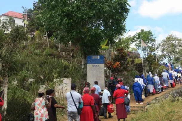 每年 3 月,许多牙买加人会在第一个星期四前往瓦特镇(Watt Town)进行复兴朝圣。这里曾是黑奴的避难所,如今被视为圣地。服装色彩明快、图案鲜明的朝圣团从牙买加各地前来,参加仪式歌唱和舞蹈。他们用被称为印章的信息符号来完成某些任务,并带来水果、鲜花、药用植物和食物等礼物来纪念祖先。