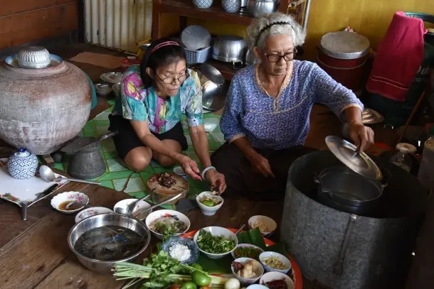 冬阴功汤是泰国的一道传统虾汤,做法是将鲜虾与香草一同烹煮,并佐以当地调料调味。此汤以香气独特和色彩鲜艳著称,且融合了甜、酸、咸、辣、奶香与微苦等多种味道。据说,这道汤能够增进活力和健康,尤其适合在雨季享用。冬阴功汤体现了在泰国中部的河畔佛教徒社区的烹饪智慧,以及他们在自然环境与药草方面的传统知识。