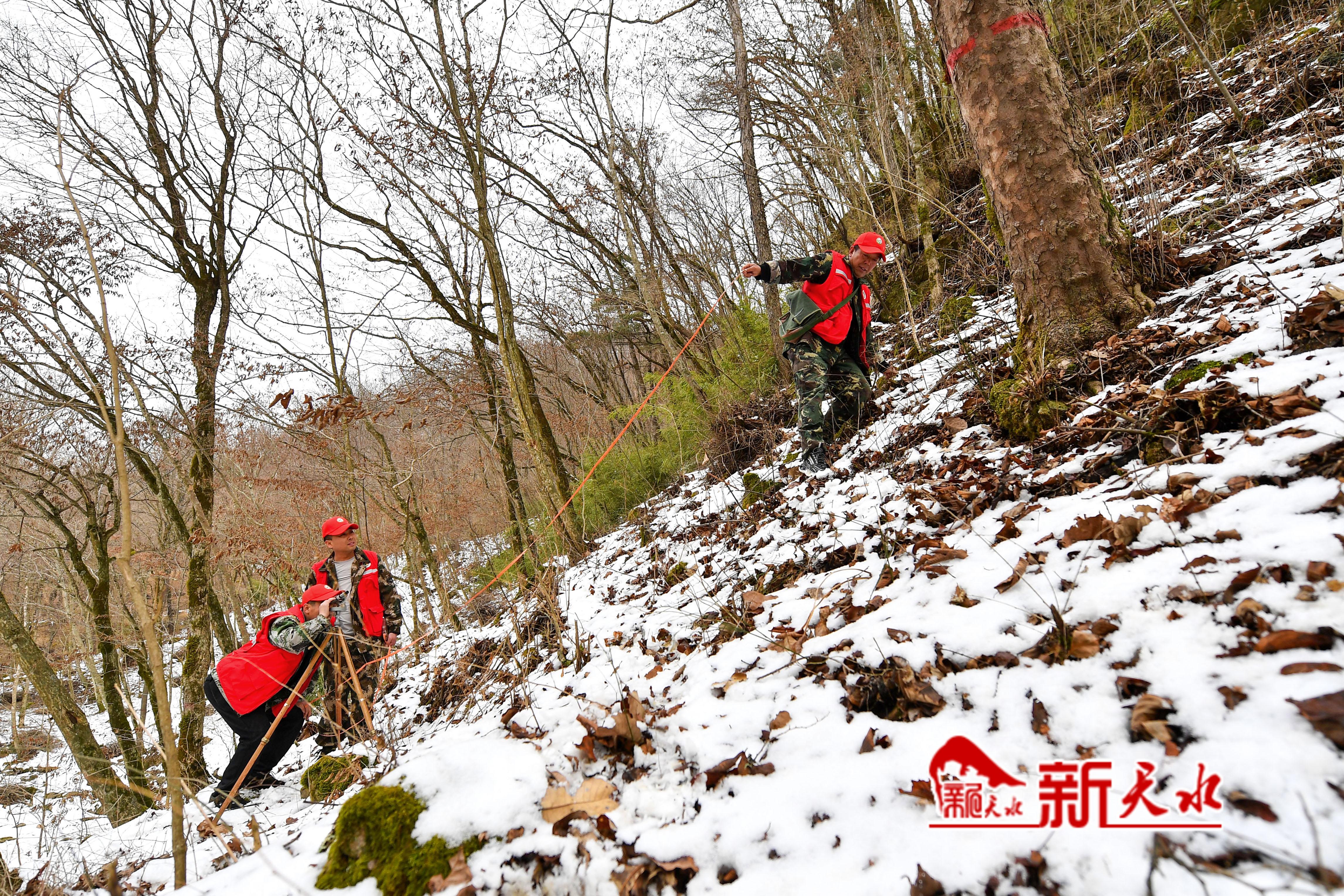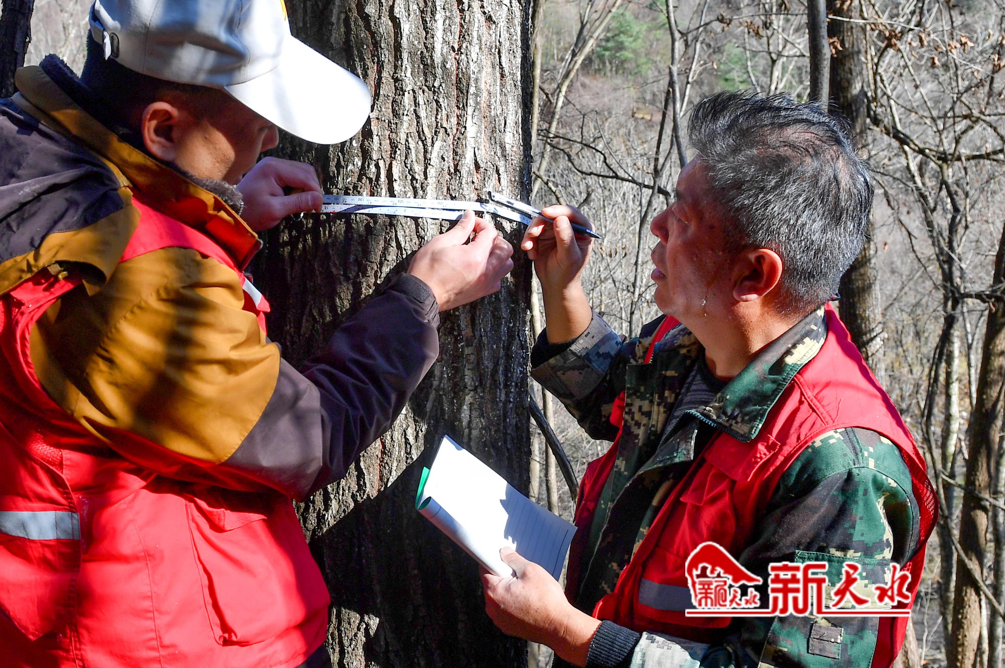 师徒二人配合默契,一个仔细测量,一个记录在册。初冬时节,山林里的气温接近0°C,但忙碌的师徒俩早已是满头大汗。