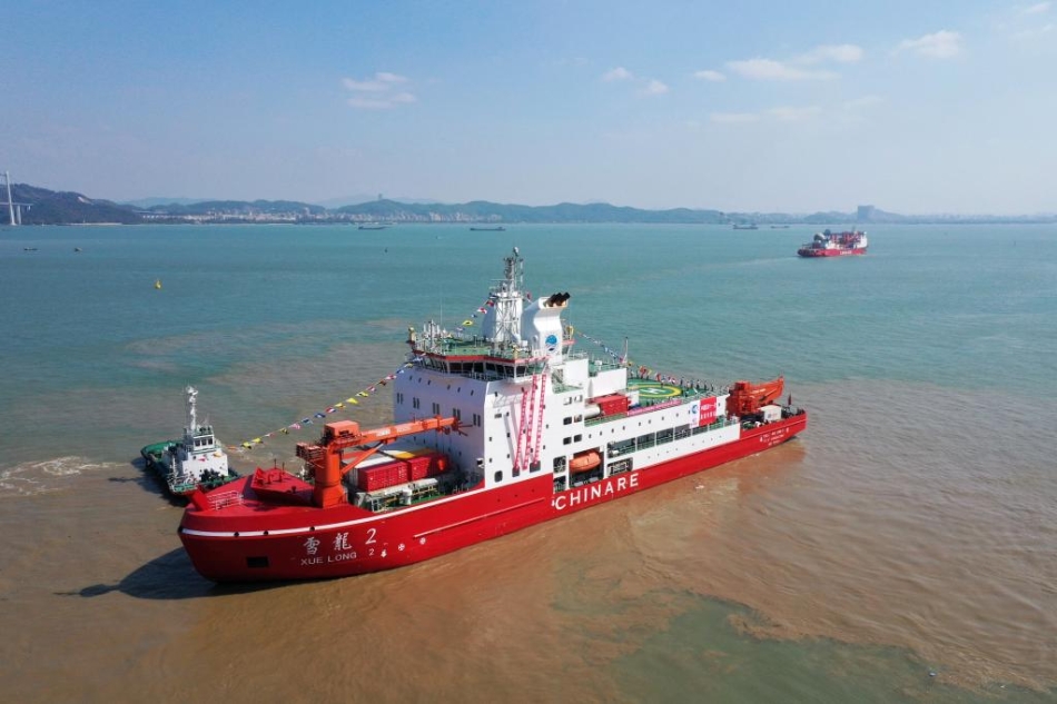 11月1日,“雪龙”号和“雪龙2”号船从广州南沙国际邮轮母港码头出发(无人机照片)。新华社记者 黄国保 摄