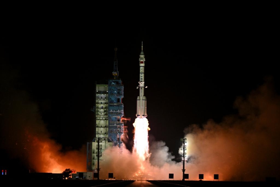 10月30日,搭载神舟十九号载人飞船的长征二号F遥十九运载火箭在酒泉卫星发射中心点火发射。新华社记者 李鑫 摄