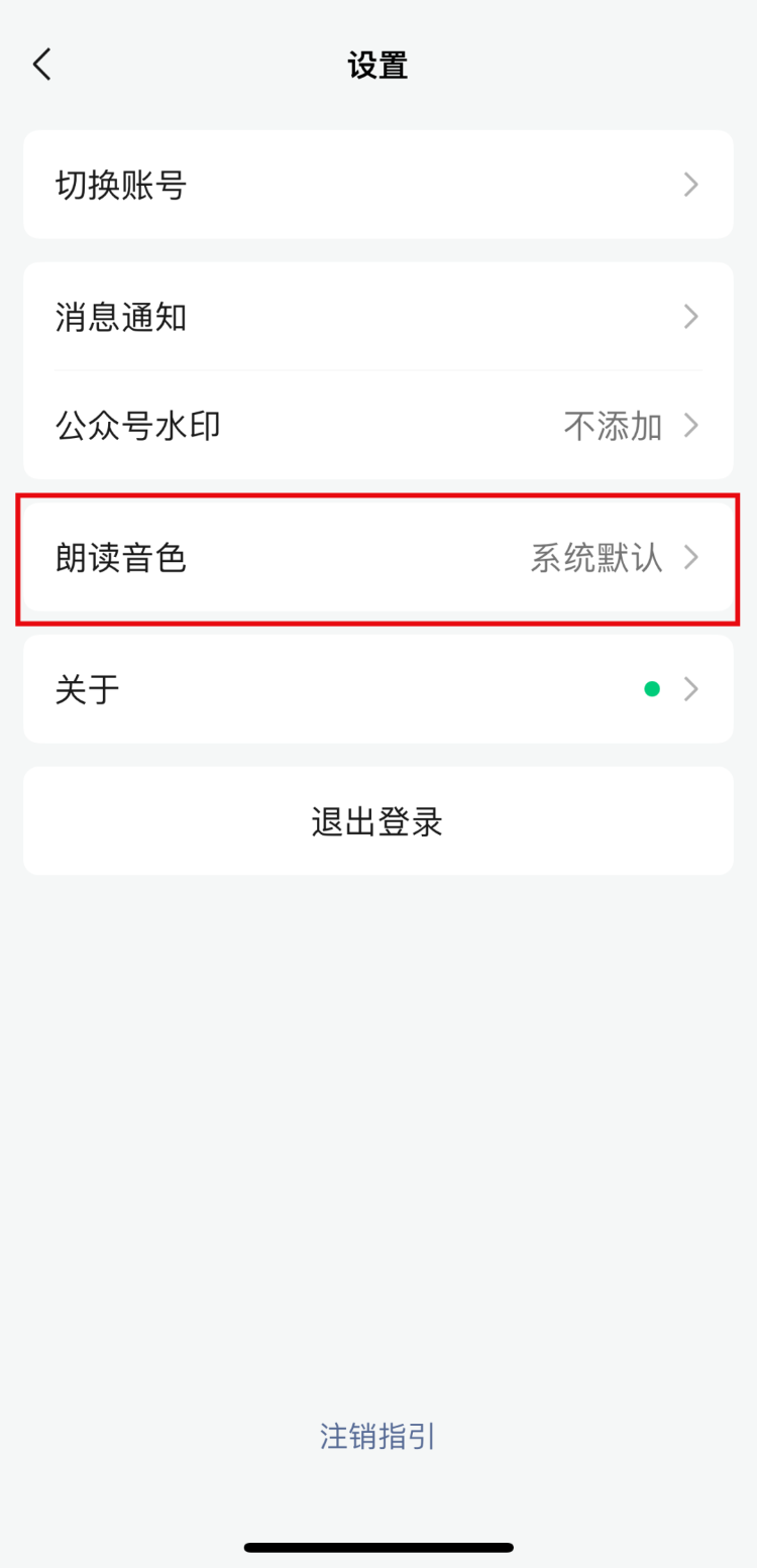 发声第一步,作者需要下载一个“公众号助手”APP,点击“我-设置-朗读音色”,就可以录制例句,例句也会复刻你的语气和情感。录制完成并点击应用,即可在公众号里拥有自己的个性化语音。