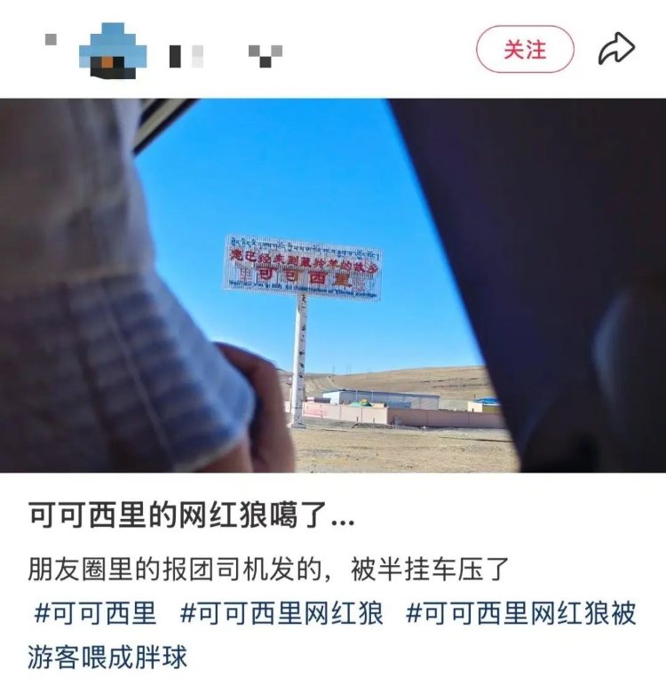 一名在附近提供旅拍服务的摄影师也在社交平台发帖《可可西里以后再没有网红狼了》,“网红狼趴在地上,原来是被大车撞了。车上的上海小姐姐帮忙打救助电话,剩下的下车去找保护站的人”。