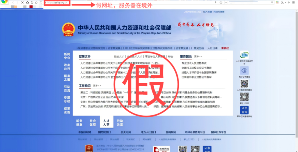 (仿冒人力资源和社会保障部相关网站,网址域名多次跳转)