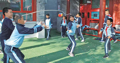北京市东城区黑芝麻胡同小学圆恩寺校区位于一条胡同里,空间略显局促。学校发布了“课间活动征集令”,把课间15分钟交给学生自己设计和策划。“编花篮3个人就能玩,不占地方”“可以观察、养护池塘边的植物”“华容道、九连环”……学生们纷纷为课间活动支招。