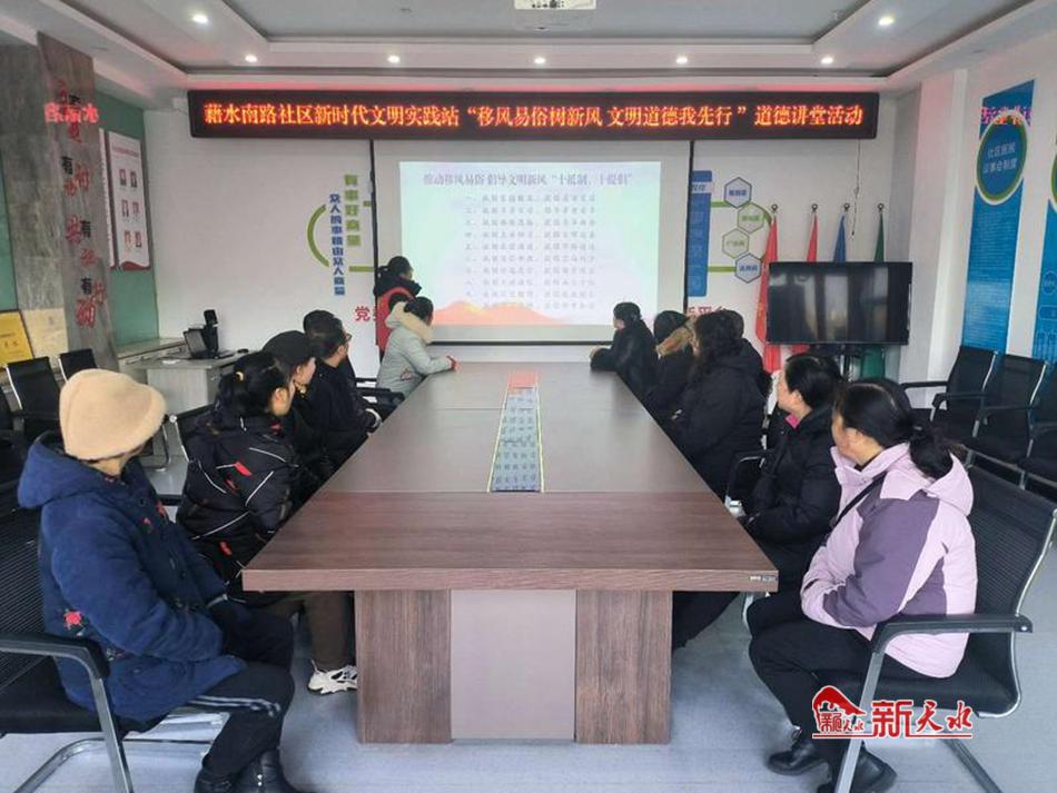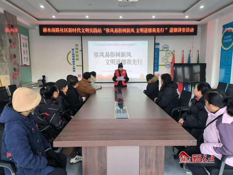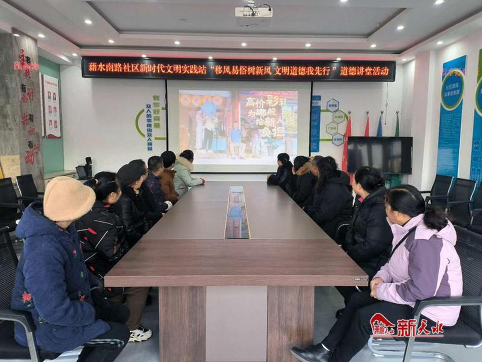 新天水讯 12月27日,秦州区天水郡街道藉水南路社区新时代文明实践站举办了以“移风易俗树新风、文明道德我先行”为主题的道德讲堂,以进一步推进移风易俗工作,树立文明新风。