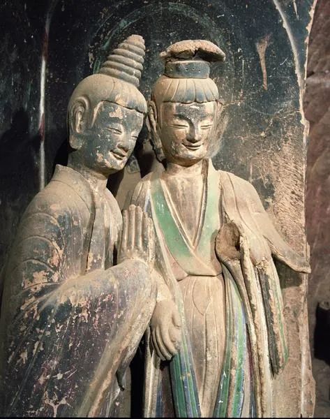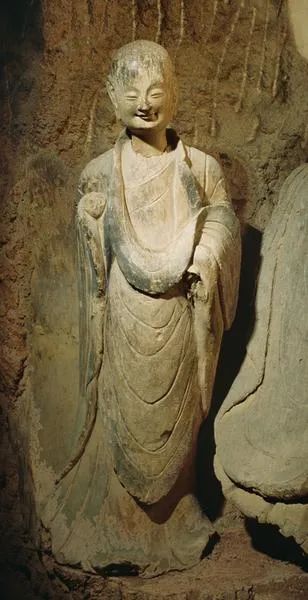 这是麦积山石窟第133窟小沙弥立像,被誉为“东方微笑”。