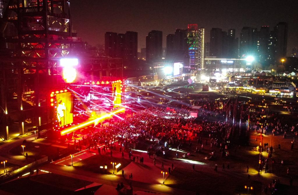 新华社石家庄1月1日电(记者巩志宏、王美祺)炫目的灯光划破夜空,激昂的音乐与胸腔共振,几十米的炼铁高炉耸立在舞台之后,“摇滚之城”标识在夜色下闪烁……12月31日,随着夜幕降临,一场以摇滚为主题的跨年音乐节,在中国北方新建的石家庄石钢工业遗址公园拉开帷幕。