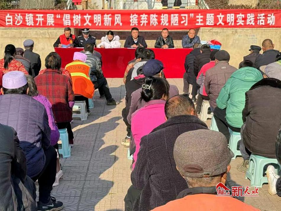 推行“自治”聚力移风易俗。结合“主题党日+新时代文明实践活动”等有效形式,白沙镇创新移风易俗抓手载体,健全完善“一约四会”,针对高额彩礼、厚葬薄养、封建迷信等陈规陋习,推出群众喜闻乐见、耳熟能详的村规民约,引导群众进一步转变思想观念,养成良好习惯;结合志愿者“积分榜”和道德“红黑榜”,将遵守村规民约、崇德向善、孝亲敬老、厚养薄葬、文明祭祀等纳入积分范畴,推行群众评党员、党员比党员、党员带群众的方式,激发自治活力,引导党员群众参与村内移风易俗、禁毒禁赌、抵制高额彩礼的宣传教育和文明新风培育中,让“小积分”释放“大能量”,用积分“兑”出新风尚。