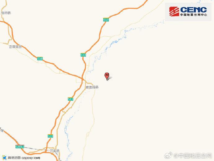新疆喀什地区麦盖提县发生3.2级地震 震源深度13千米