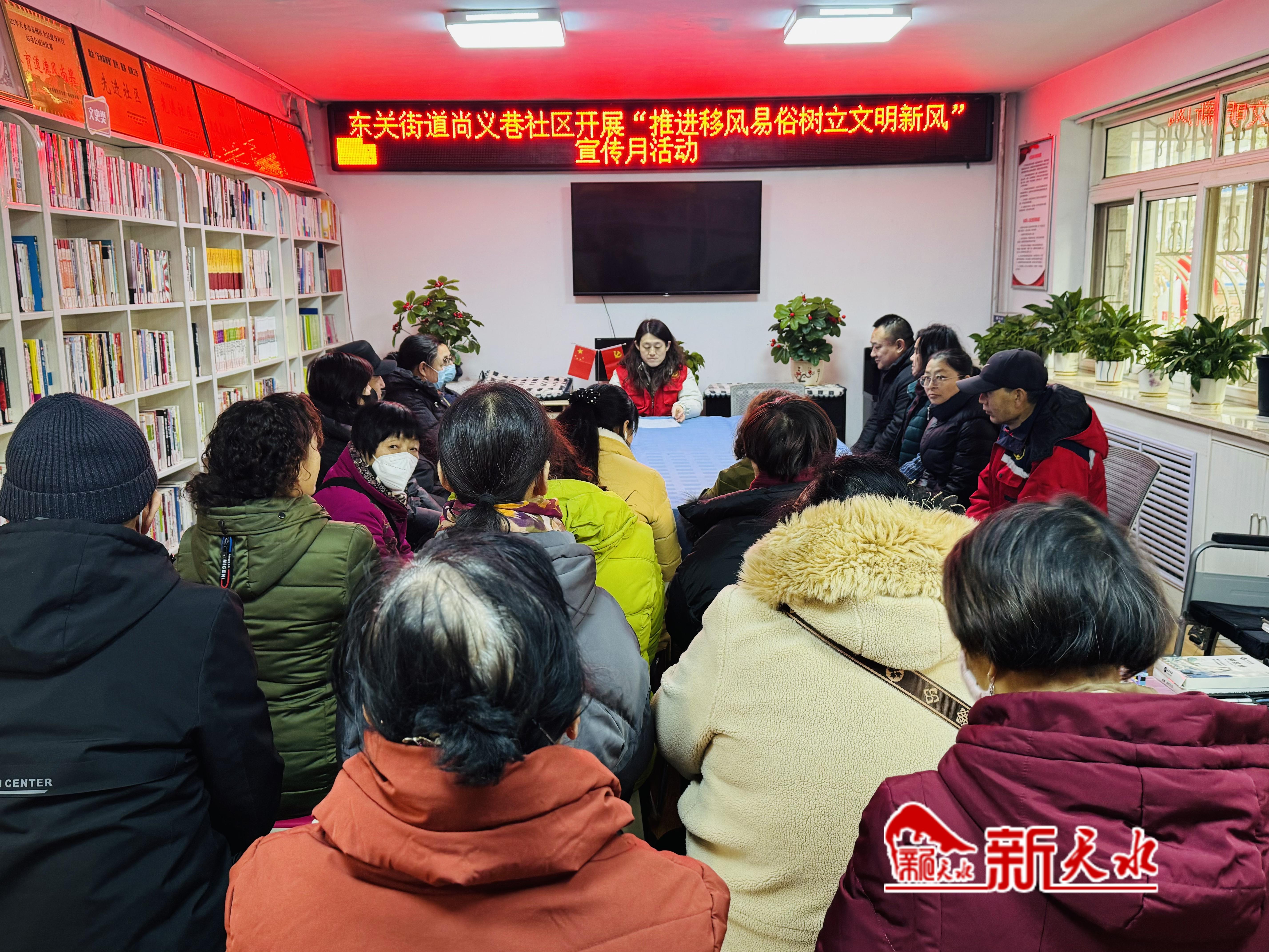 新天水讯【记者 蔚军平】近日,秦州区东关街道尚义巷社区新时代文明实践站开展了“推进移风易俗,树立文明新风”主题宣传活动,旨在大力培育和践行社会主义核心价值观,破除陈规陋习,树立文明新风,切实营造“移旧俗、除陋习、尚科学、倡新风”的良好社会氛围。