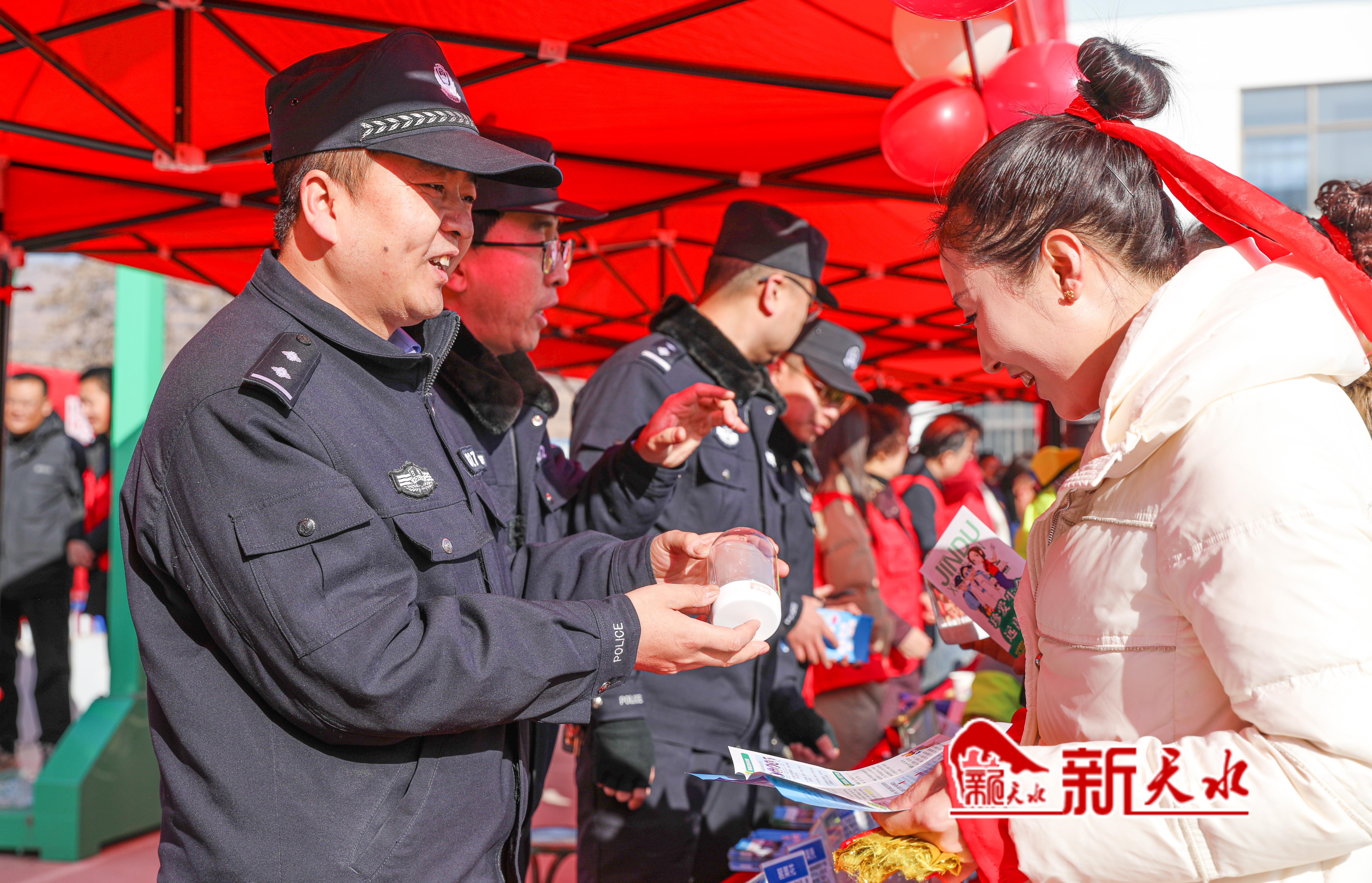 活动中,民辅警通过发放宣传资料、悬挂横幅、摆放展板、设置咨询点、面对面讲解等形式,向现场群众普及了禁毒、交通安全、预诈、防火防盗等相关法律法规及“110”受理群众报警求助范围等知识,并详细解答了群众提出的关于婚姻家庭、劳动权益、环境保护等方面的法律问题。新天水记者 张彬霞 摄