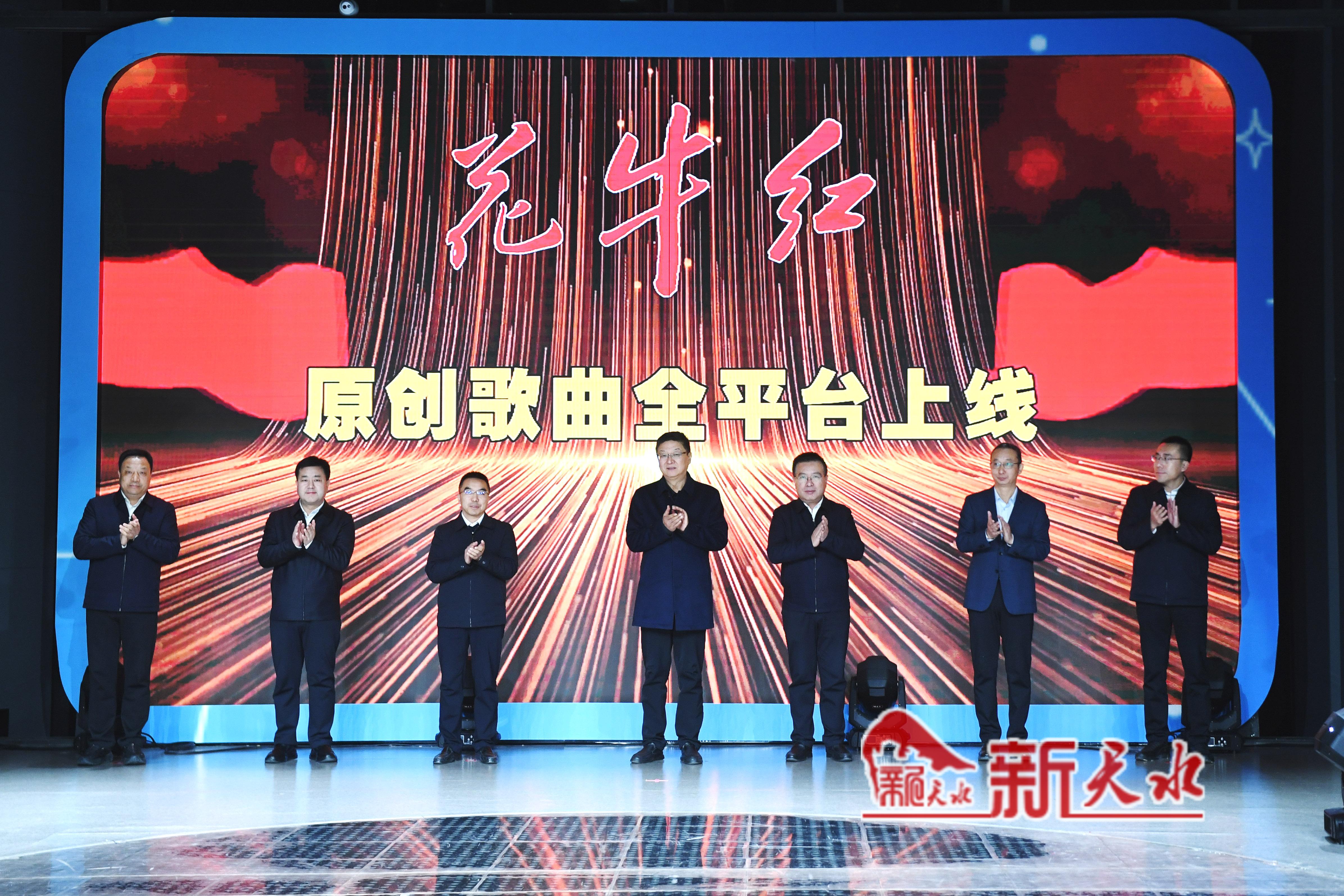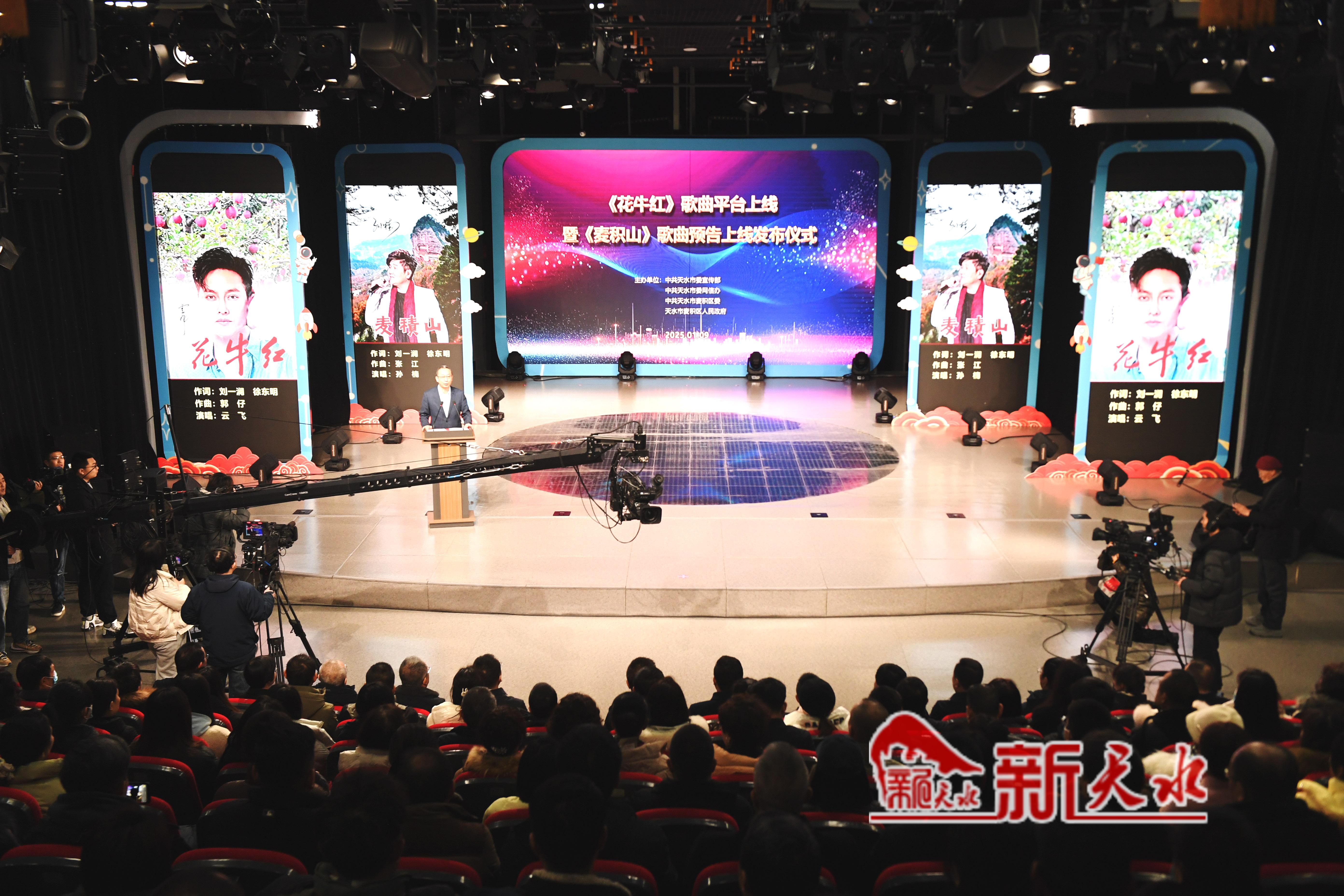 新天水讯【记者 马放】1月9日上午,天水市举行《花牛红》歌曲全平台上线暨《麦积山》歌曲上线预告发布会。市委书记冯文戈,市委副书记、市长刘力江出席发布仪式。