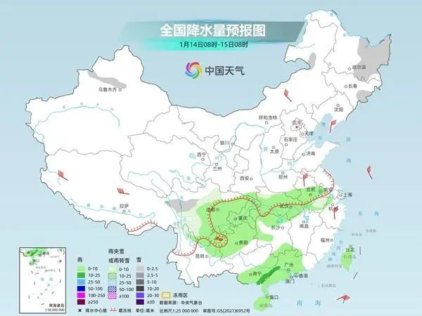 今起三天,雨雪天气将发展增多,明天长江沿线和广东等地也将出现降雨,但量级不大,且时间短暂,难以缓解近期因降水稀少而导致的旱情,江南、华南等地部分地区仍有气象干旱,当地需注意防范。