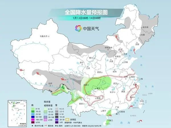 今后三天,我国雨雪天气总体在发展增多,青藏高原至西南地区东部自西向东将有一次雨雪天气过程。其中今天,内蒙古中部和东部、西藏大部、川西高原北部等地部分地区有小到中雪或雨夹雪,西藏南部和西部等地部分地区有中到大雪,局地暴雪。西藏东南部、四川盆地西南部、云南中西部、台湾岛东部等地部分地区有小雨。