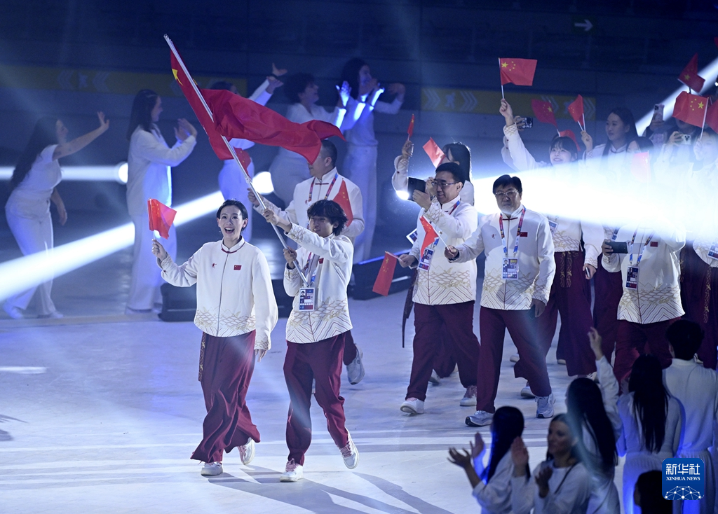 第32届世界大学生冬季运动会13日晚在意大利都灵开幕。开幕式上,裴君杭、刘祥琪担任中国代表团旗手。他们带着荣耀和责任,期待着在这场青春盛会中绽放和成长。