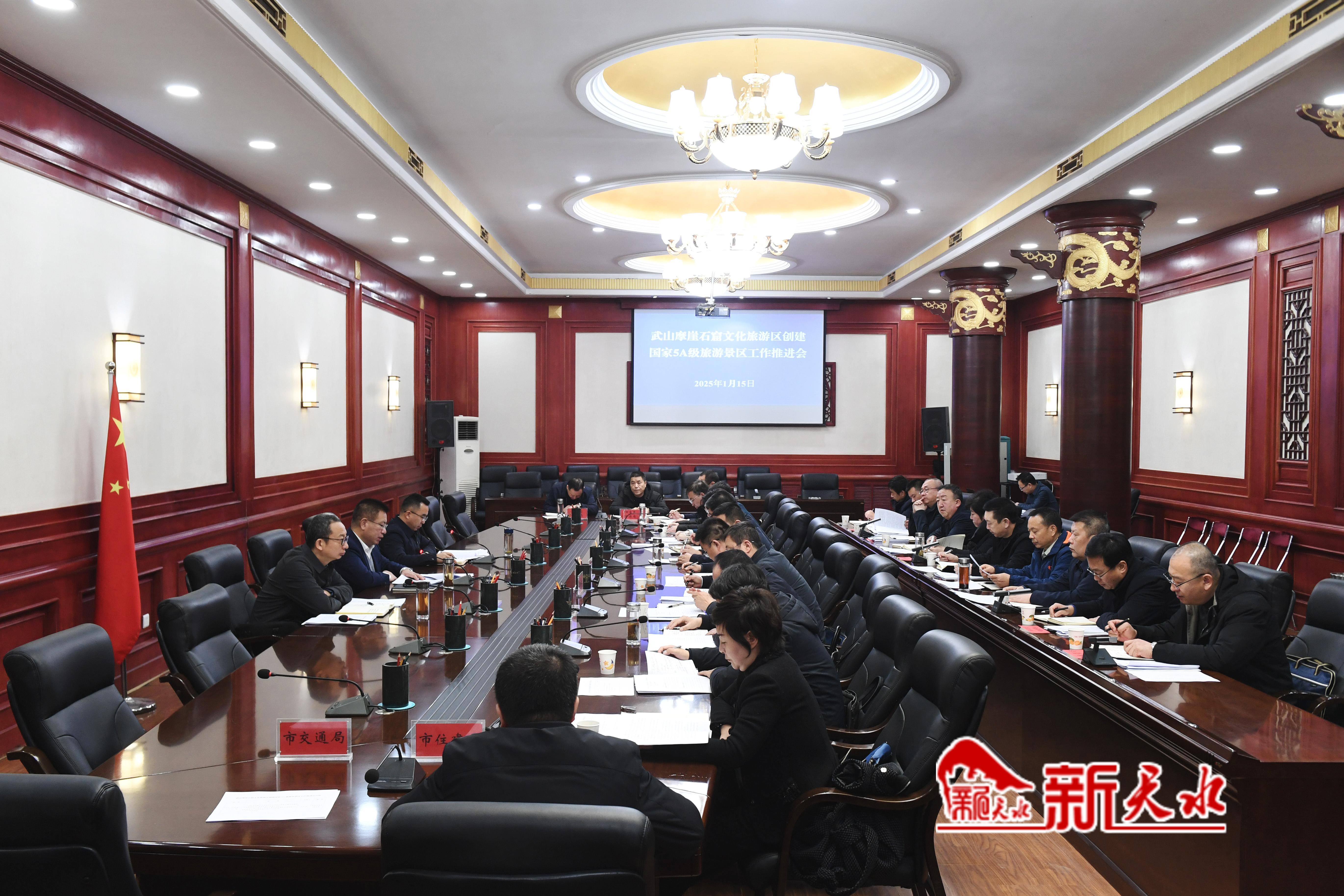 新天水讯【记者王琴】1月15日,我市召开武山摩崖石窟文化旅游区创建国家5A级旅游景区工作推进会。市委副书记、市长刘力江出席会议并讲话,市委常委、宣传部部长王文东主持会议,副市长董小平参加会议。