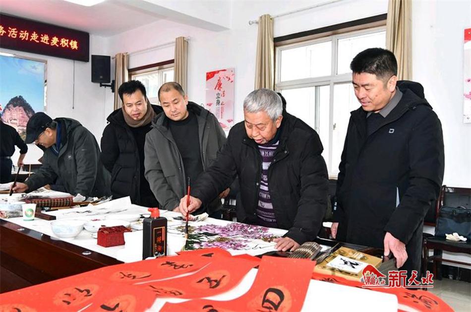 新天水讯【特约通讯员 窦耀辉】1月17日,麦积区文联组织10多位书画艺术师走进麦积镇,深入开展“迎新春 送万福”书画交流暨“四百”主题文艺志愿服务活动,为麦积镇广大干部群众送去了丰盛的“精神年货”,推动“四百”主题活动走深走实。