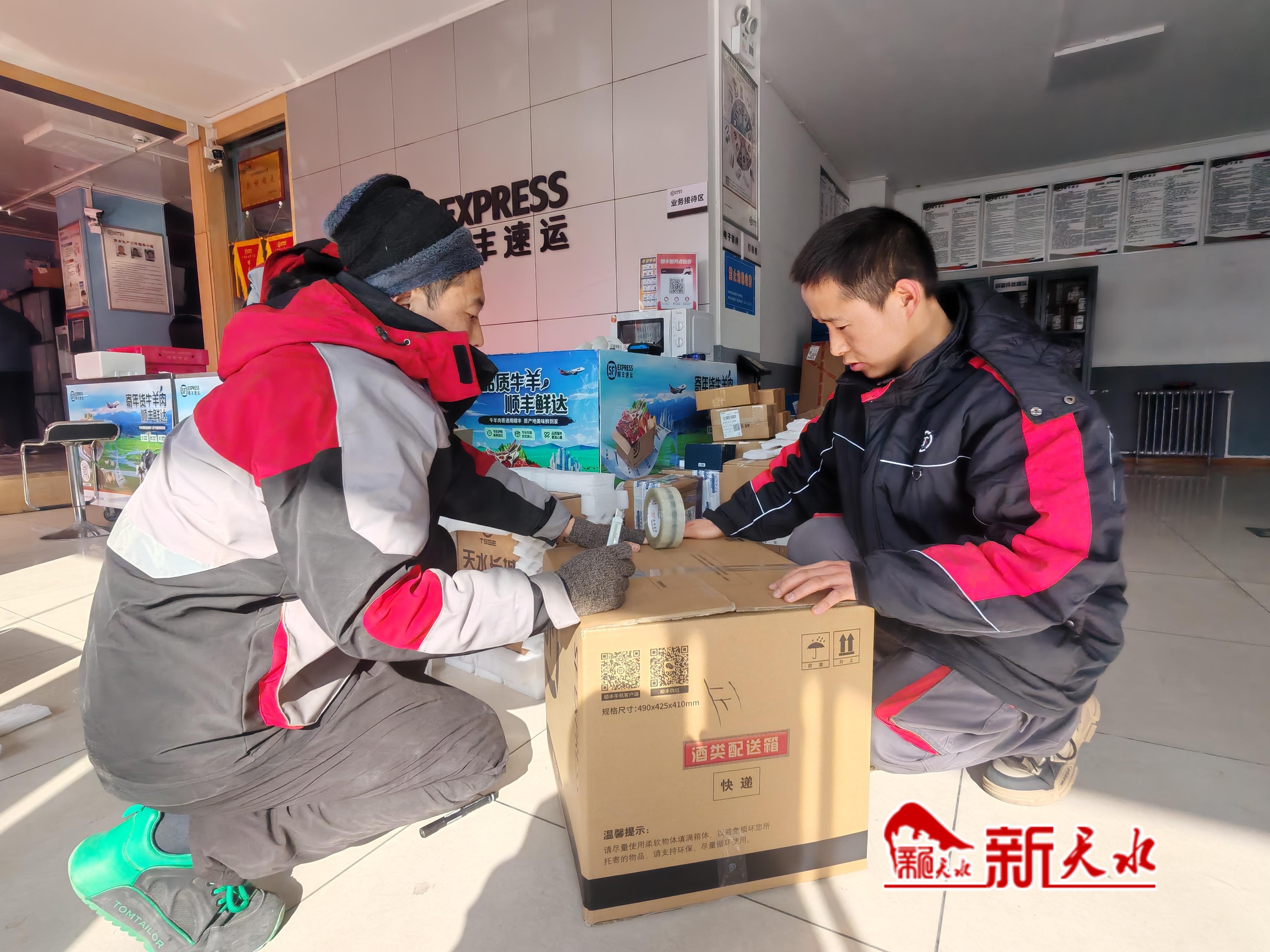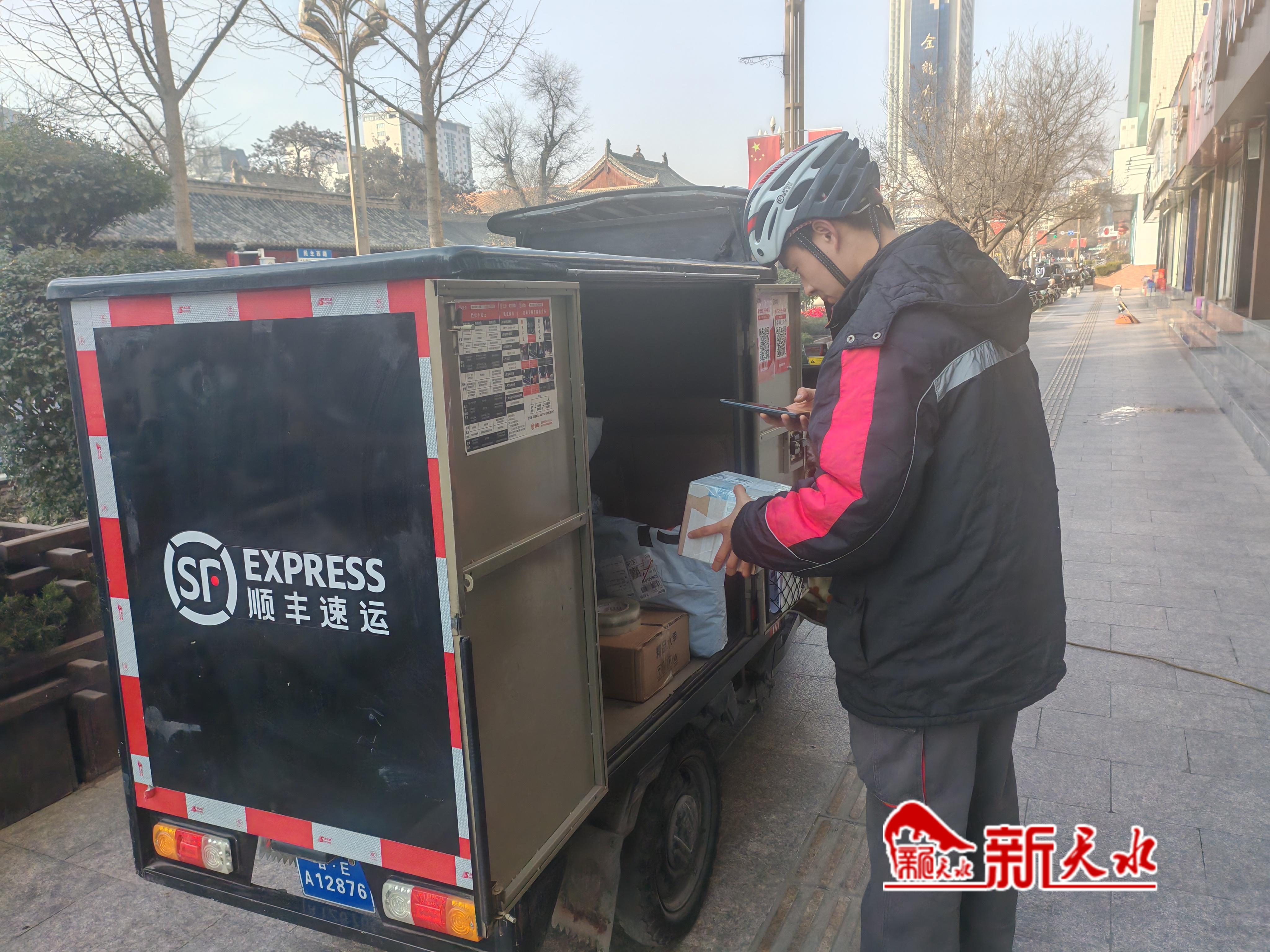 师文龙是顺丰速运天水红桥店的一名快递员。他对记者说:“过年期间每天的货量比较大。我家离得近,就主动申请过年值班,坚守在岗位一线,主动帮同事分担一些压力。”