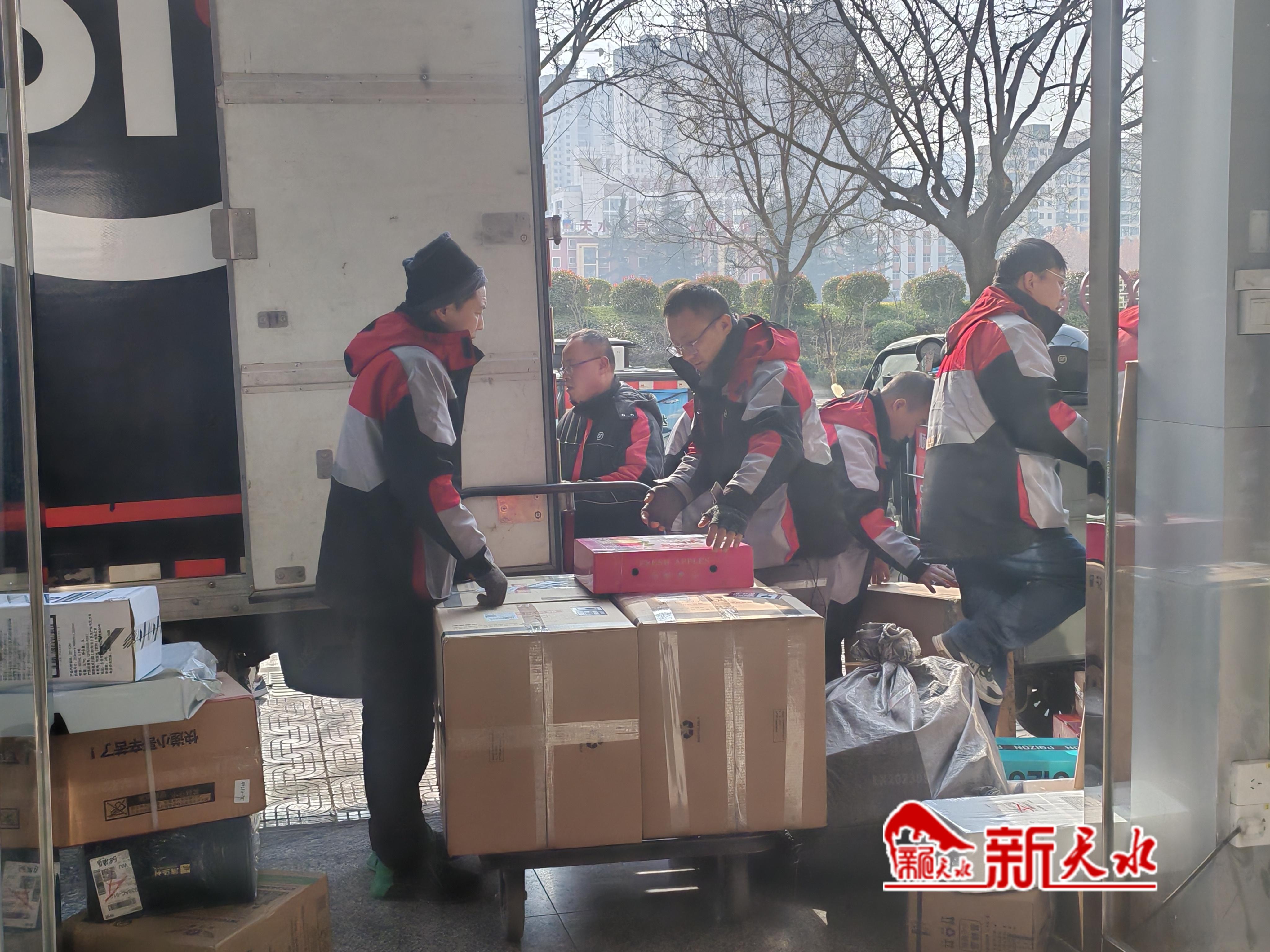顺丰速运天水红桥店经理马军善介绍道:“从正月初一到初七,网点基本每天都有八九名快递员值班,后续会根据件量的动态变化,适当增加人员保障快件派送,确保区域内客户的正常派件、发货能及时响应,满足春节期间客户的寄递需求。”