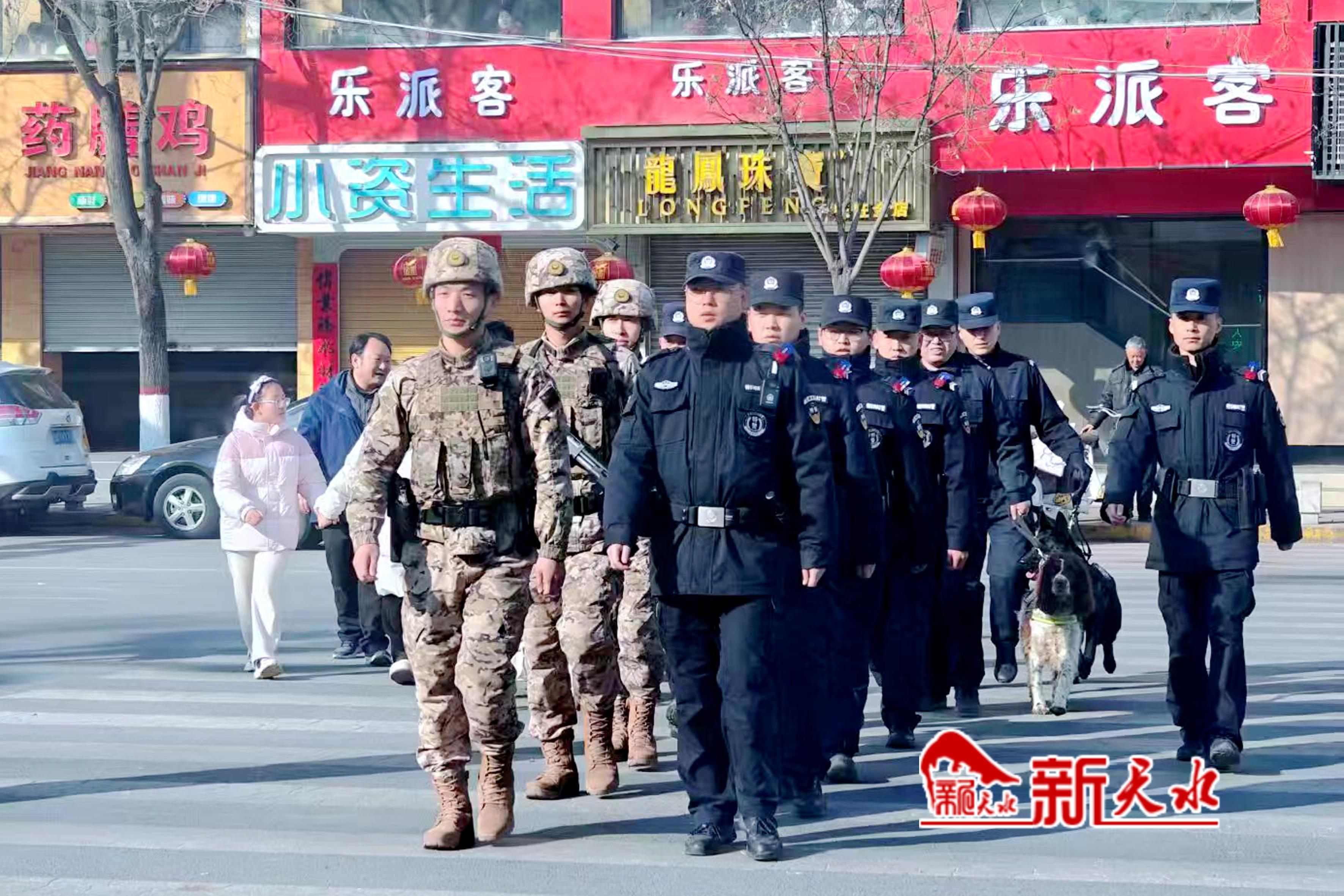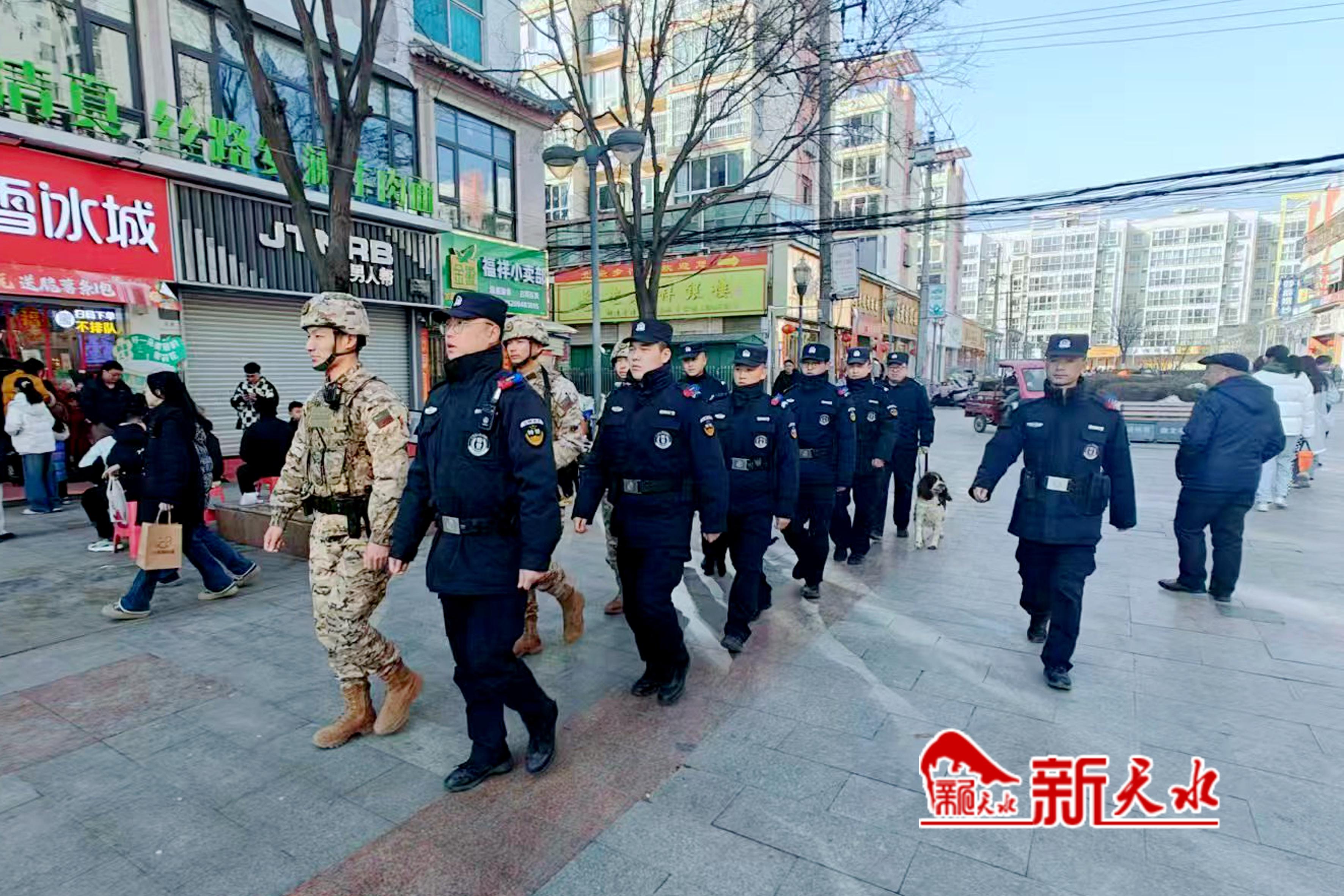 新天水讯【记者张彬霞】为切实做好春节后至元宵节前的应急处突和秩序维护工作,保障人民群众的生命财产安全,秦安县公安局特巡警大队联合秦安县武警中队和县局刑事科学技术室警犬中队持续开展武装联勤巡逻,以高度的责任感和使命感,为群众筑牢平安防线。