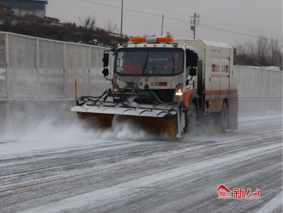 新天水讯 2月10日夜间,张家川县境内普降小雪,部分路段出现积雪现象,张家川公路段迅速集结人员、机械,按照“随下随清、雪中路通、雪停路畅”的工作要求,兵分多路赶赴所养护路段开展除雪保畅工作。