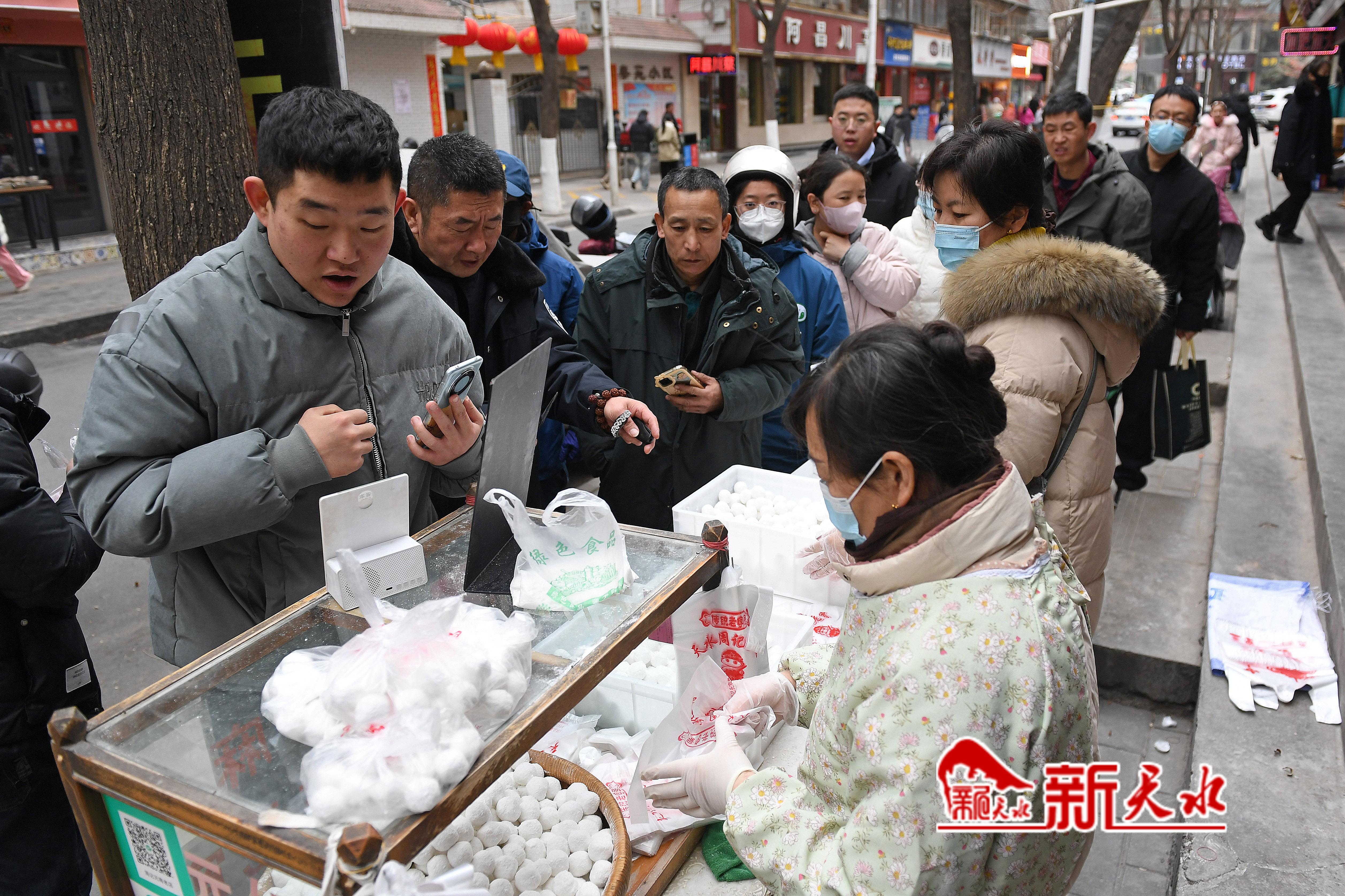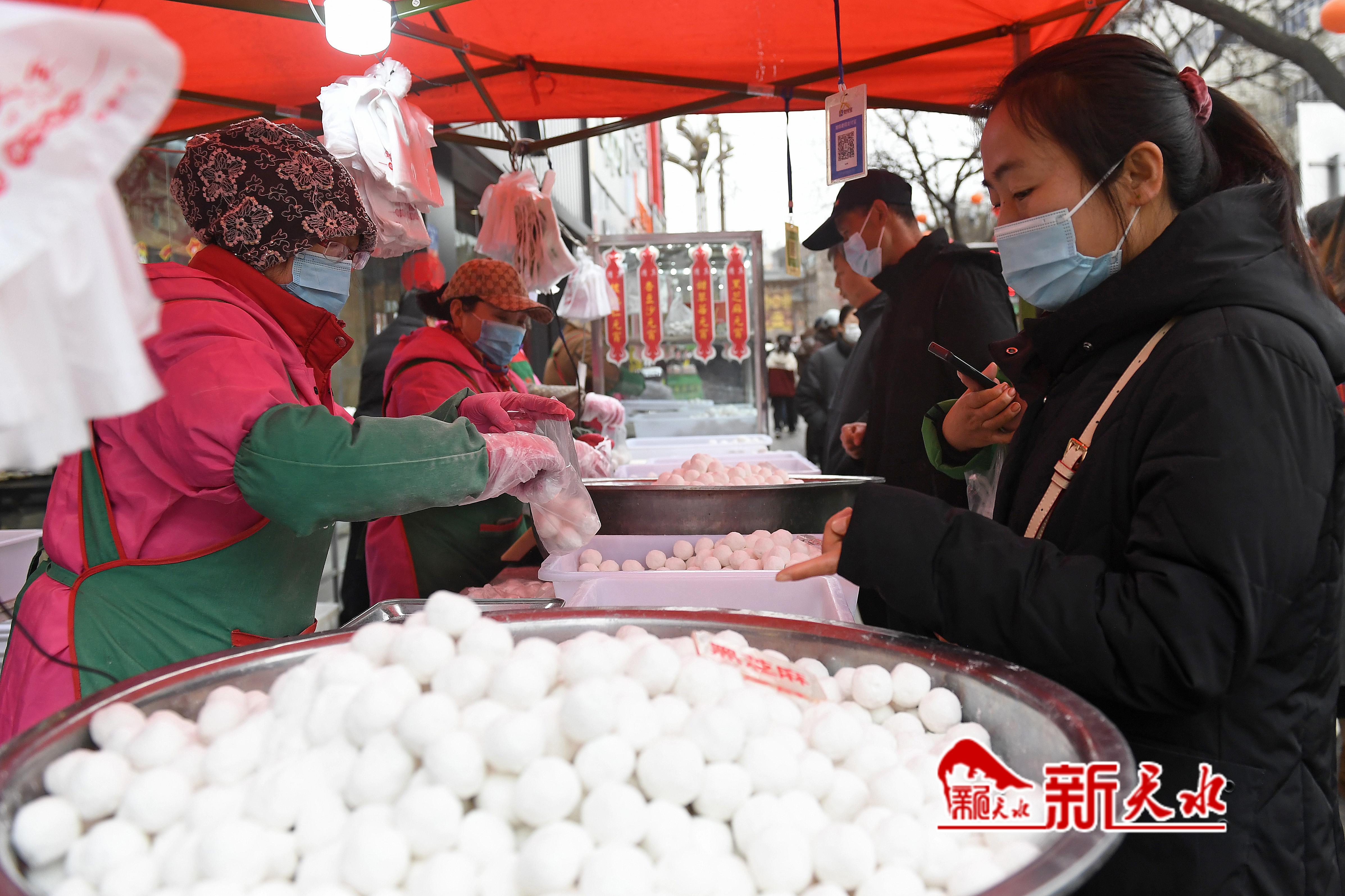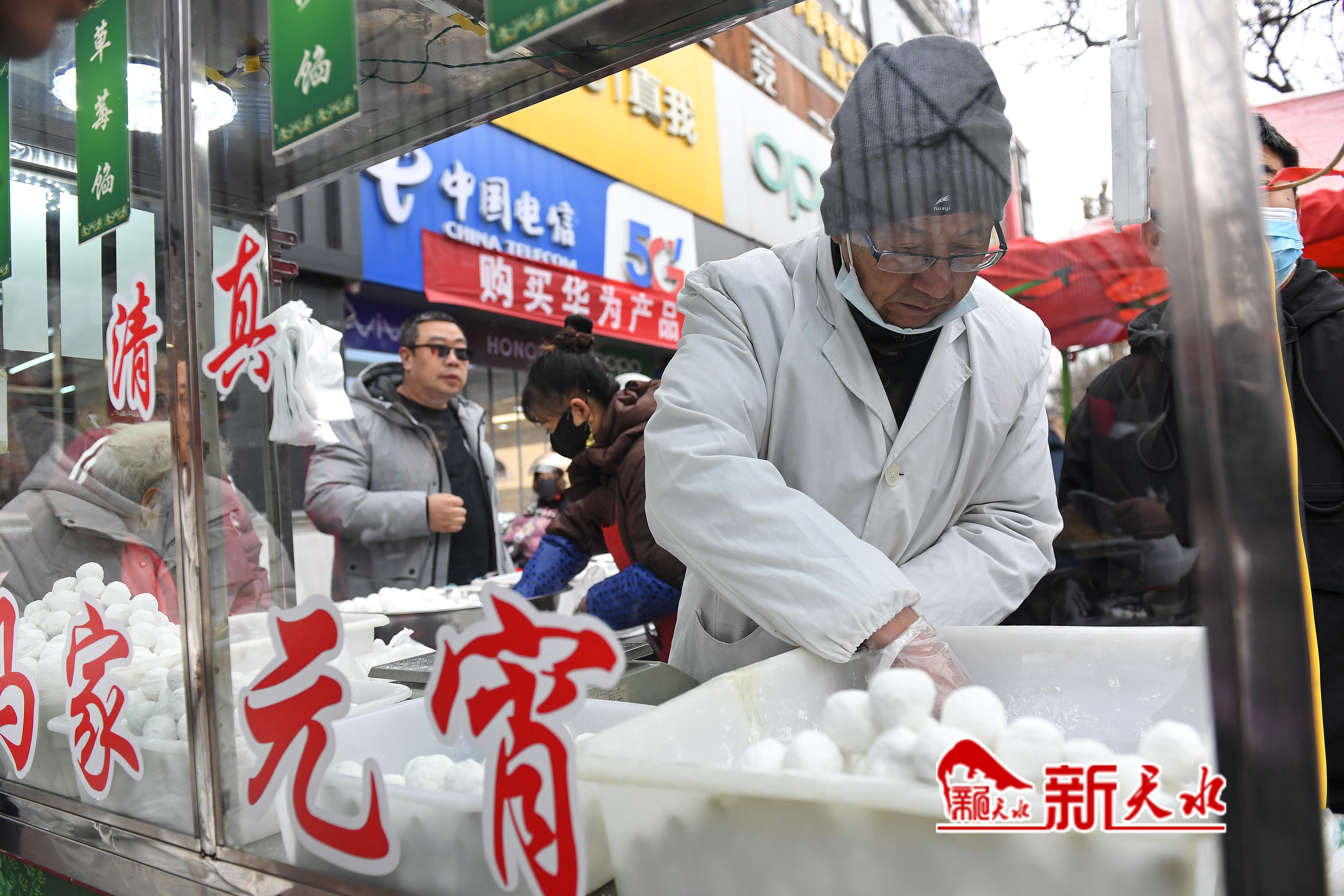 2月12日,农历正月十五元宵节,天水市民走上街头选购元宵、彩灯,观看“祥狮登高”表演,喜乐欢度元宵佳节。新天水记者 孙镇 摄