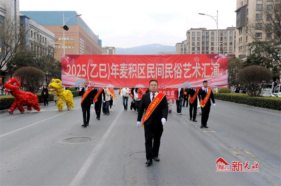 新天水讯 社火欢腾贺佳节,锣鼓喧天闹新春。2月10日,“芳华盛起锦绣麦积”2025(乙巳)年春节麦积区民间民俗艺术展演活动举行,来自全区的2180名参演人员带来了精心准备的169个展演节目,为游客和市民呈上了一道道色香味俱佳的“新春文化盛宴”。