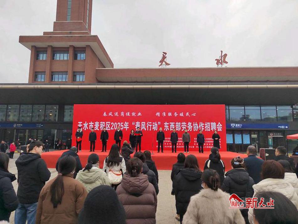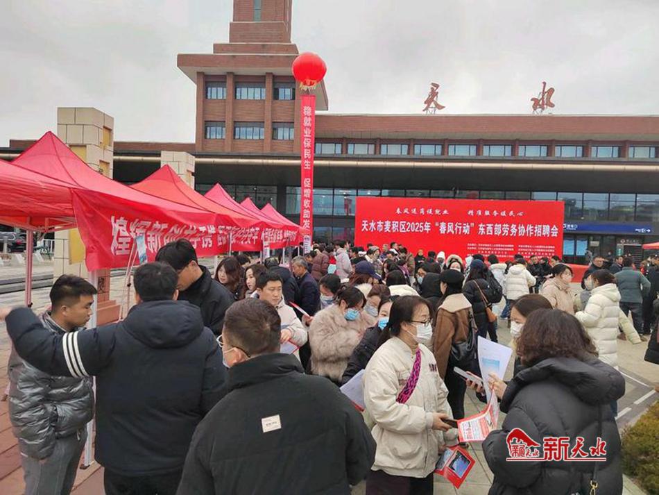 新天水讯 2月10日,麦积区在天水火车站广场举办以“春风送岗促就业、精准服务暖民心”为主题的2025年“春风行动”东西部劳务协作招聘会,以促进城乡劳动力特别是脱贫劳动力、高校毕业生等重点群体就业。