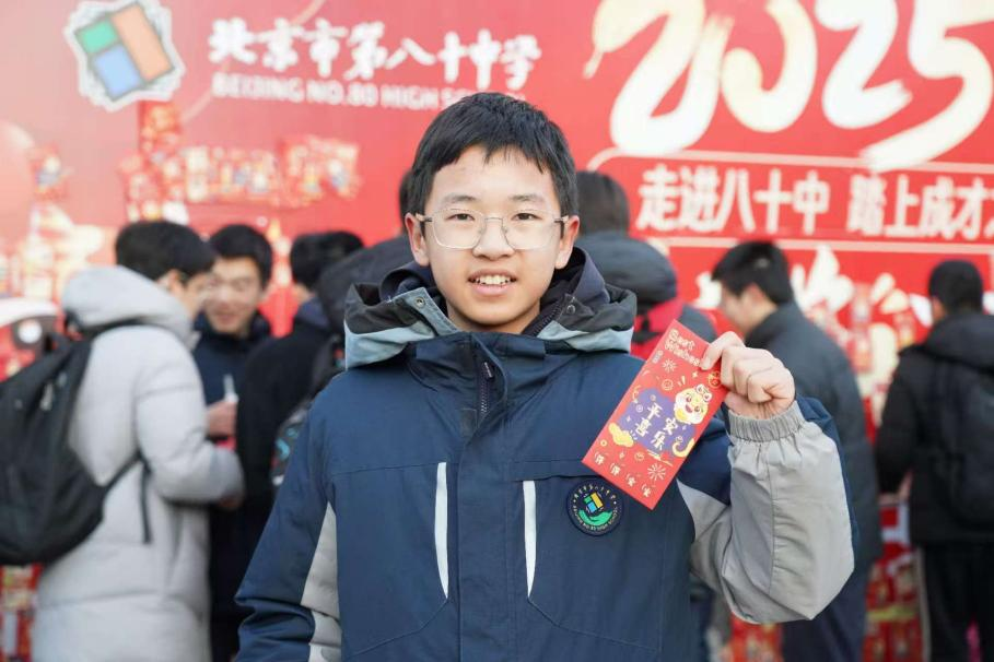 “逐光而行,笔下生花”“以书为盾,披荆斩棘”……开学首日,北京市第八十中学校内宽达10米的“红包墙”惹人注目,学生们兴高采烈地领取“独家祝福”。