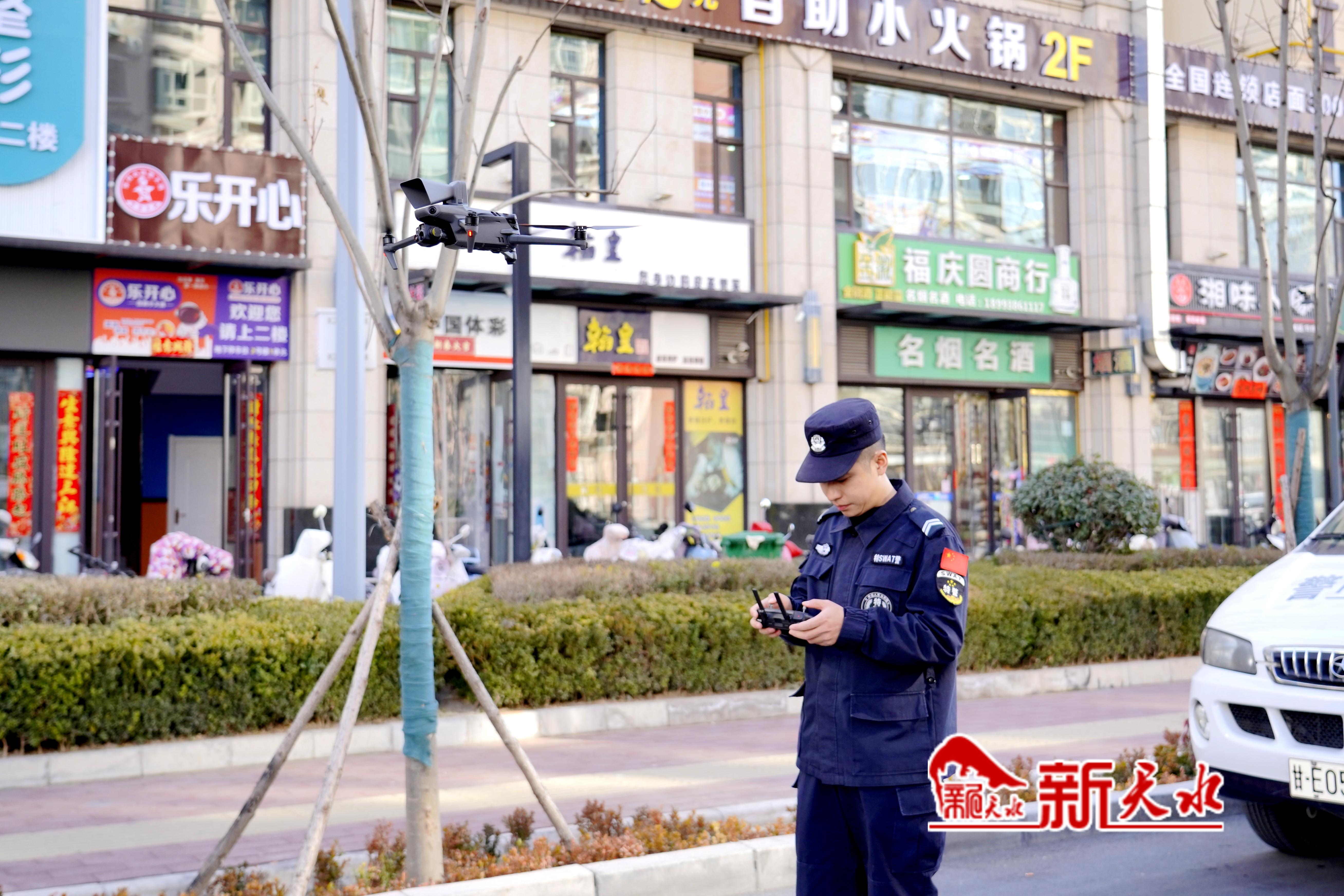 新天水讯【记者裴婷婷 张雷】“调大焦距,观察一下步行街周边情况。”2月28日,随着螺旋桨的嗡鸣声,一架无人机迅速升空至百米高度,对地面治安状况进行全方位“扫描”,随之而动的是城市快速反应小组对周边展开机动巡逻。