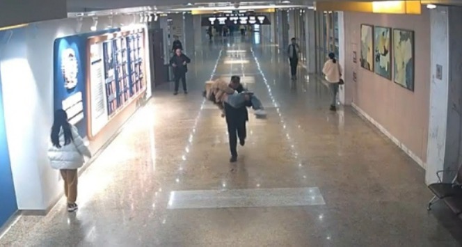 3月14日清晨7时55分,浙江大学附属邵逸夫医院钱塘院区的门诊大厅发生惊险一幕。一名家属背着患者匆忙进门时,患者突然昏迷从家属背上滑落,重重摔倒在地,此时家属已经精疲力竭。正在门口巡逻的保安杨国辉见状冲了上去,抱起昏迷的患者一路飞奔向抢救室。