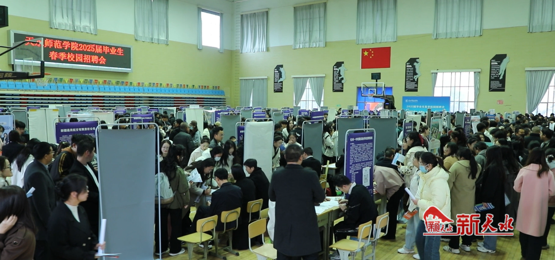 就业是最大的民生,为解好“大学生就业”这道“民生大题”,天水市高校坚持“传道受业”和“推动就业”两手抓、两手硬的育人原则。3月27日,天水师范学院校园内人声鼎沸,一场盛大的春季校园招聘会在体育馆如期举行,为即将走出校园的毕业生们提供了宝贵的就业机会。