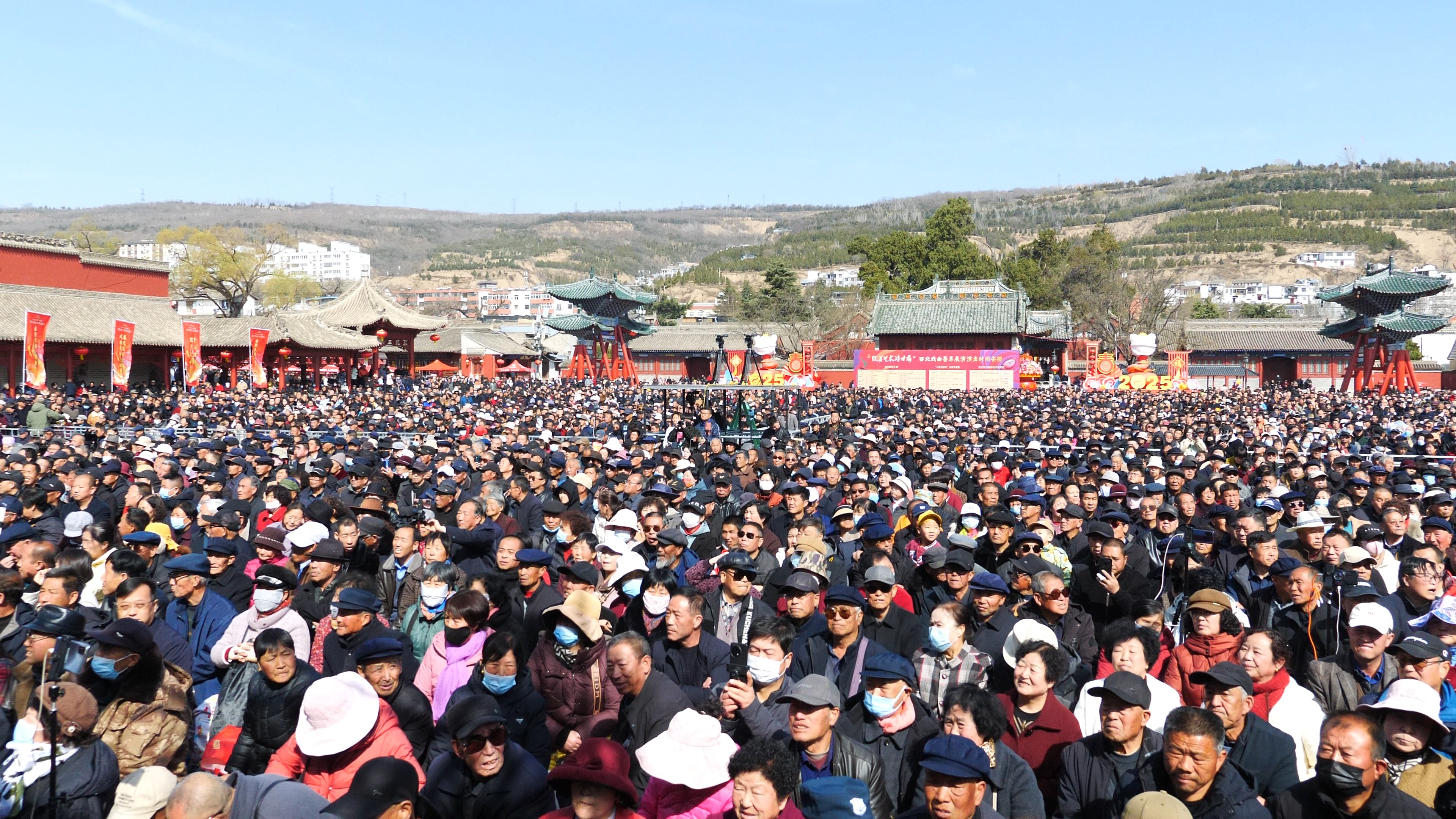 在天水市伏羲广场,观众们齐聚一堂,欣赏秦腔汇演。新华社发