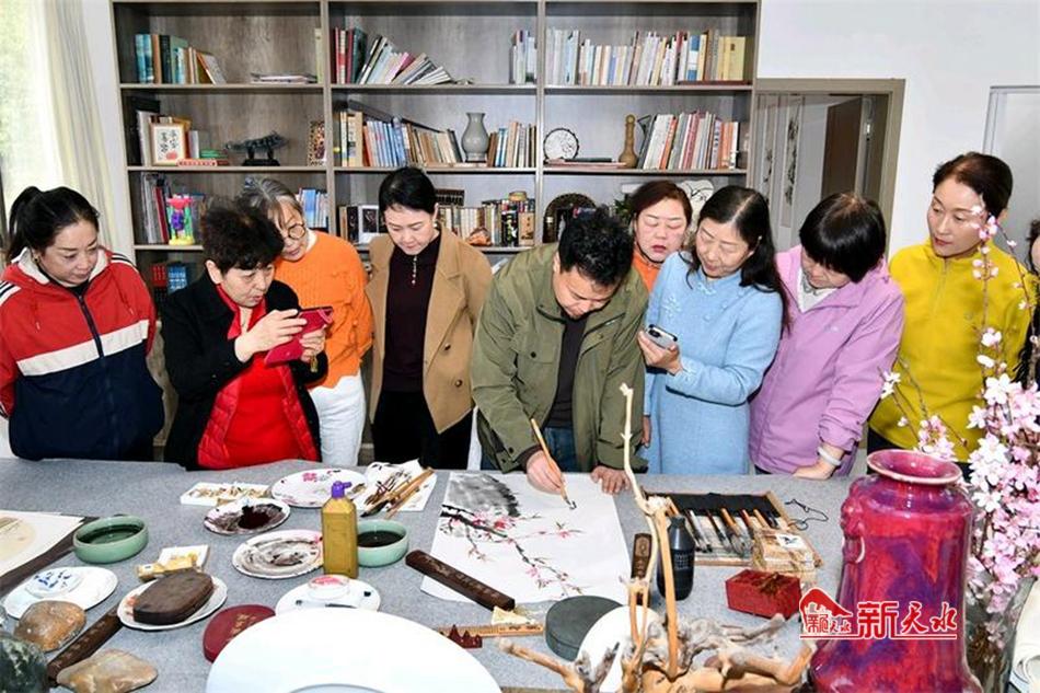新天水讯【特约通讯员 窦耀辉】阳春三月好风光,正是户外写生时。近日,麦积区文化馆公益花鸟培训班走进林栖阁,开展写生教学活动。