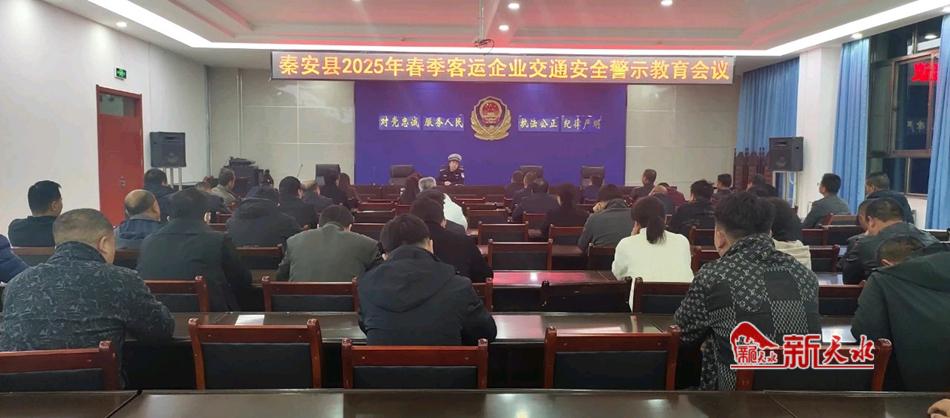 新天水讯 4月1日,秦安县公安局交警大队联合县交通运输局召开2025年春季客运企业交通安全警示教育会,以进一步加强客运企业源头管理,压实客运企业安全生产主体责任,有效预防和减少涉及客运车辆道路交通事故的发生,保障广大群众的生命财产安全。