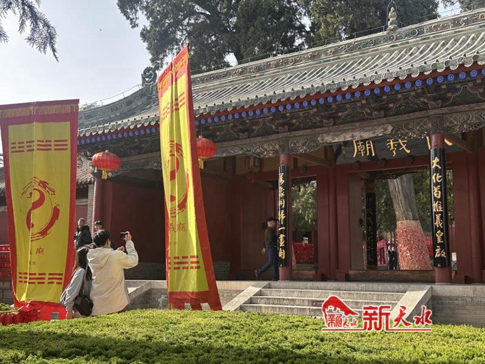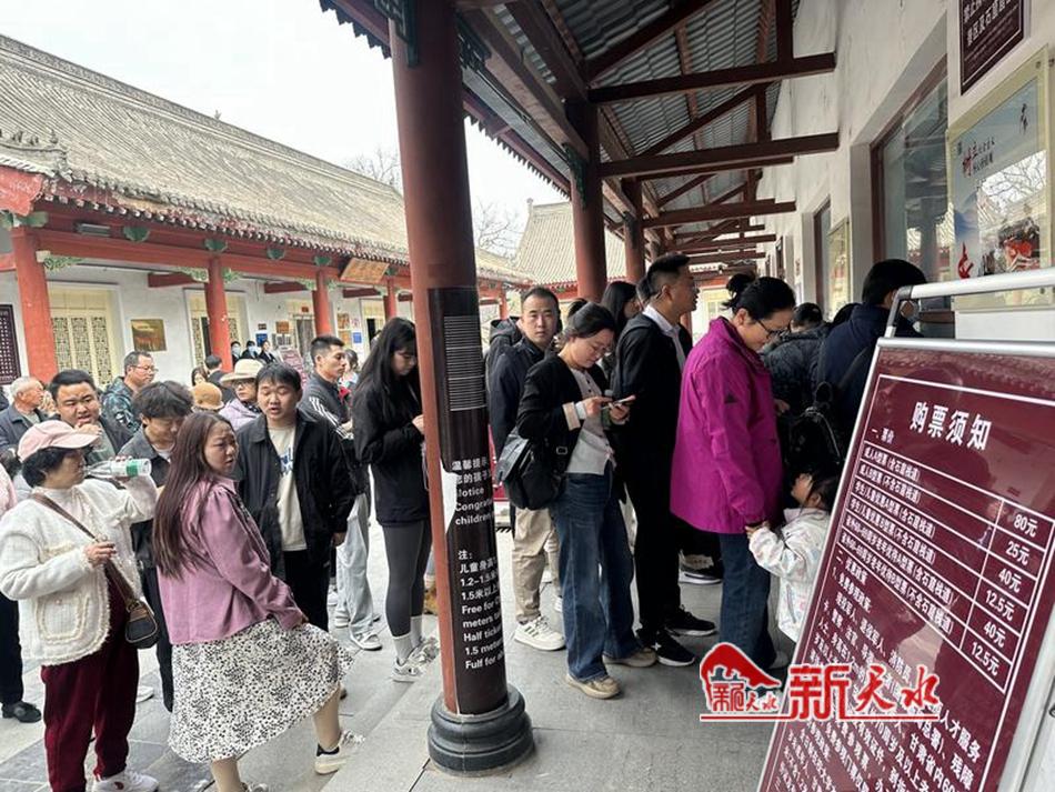 中午时分,伏羲城内人声鼎沸,景区售票处排起长队。“清明假期游客激增,为确保安全和游览体验,我们增设售票窗口,并在安检、讲解岗位增派志愿者。同时,前期已全面检查设施设备,强化应急保障措施。”天水市博物馆社会服务部讲解员张娅表示,假期首日伏羲庙景区接待游客5000余人次,预计次日达到客流高峰。