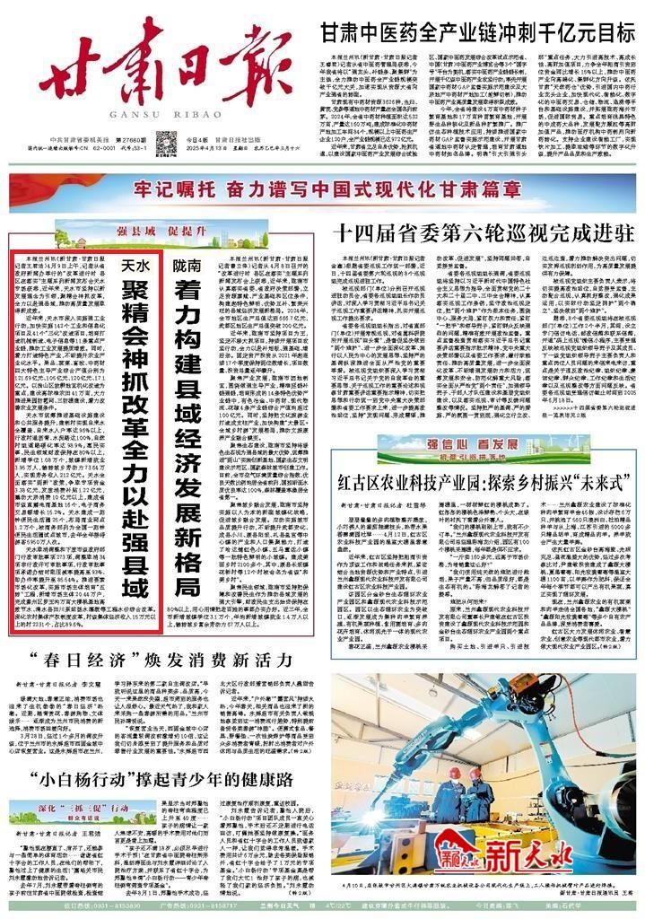 甘肃日报丨天水 聚精会神抓改革全力以赴强县域