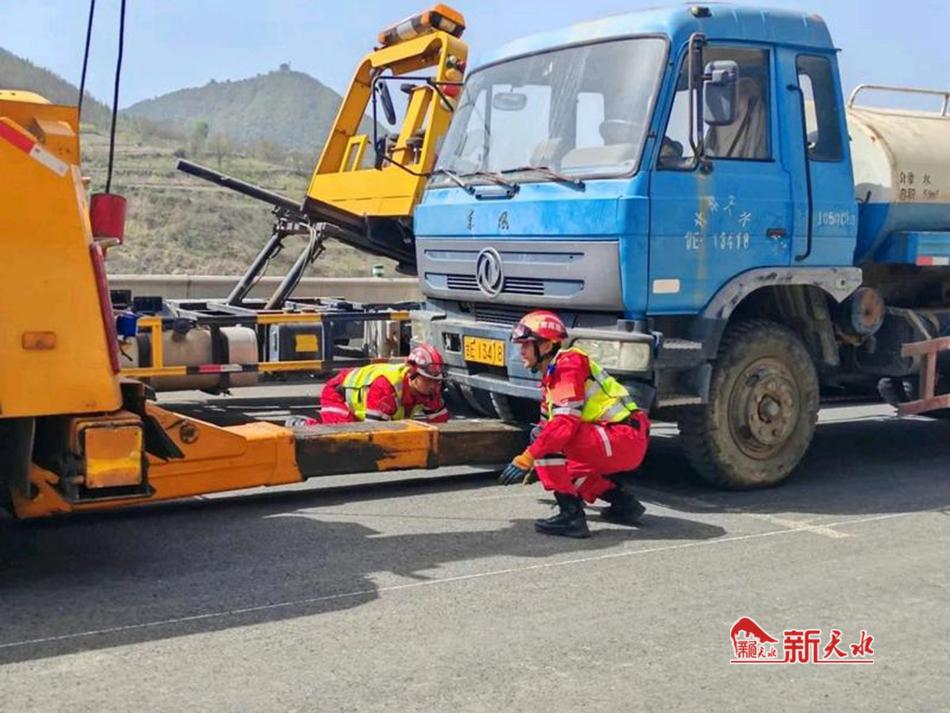 新天水讯【任杰 通讯员文邦宇】4月16日,天水清障救援一、二大队联合交警、路政部门在麦积区G30连霍高速出口与S25静天高速交叉口开展了道路交通事故联合处置应急演练,全力保障即将到来的“五一”高速公路行车安全通畅。