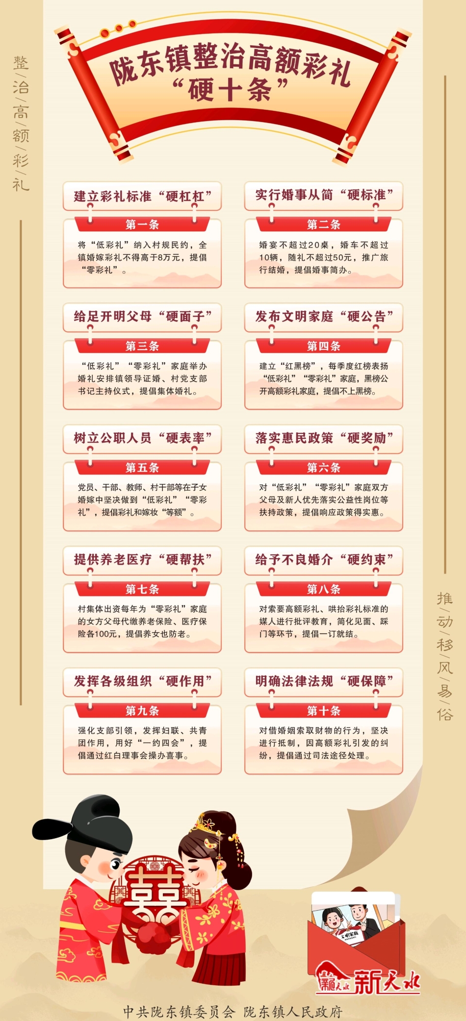 如今的陇东镇,彩礼金额平均下降5万元,90%的家庭选择婚事简办,群众满意度超过95%。“硬十条+红黑榜”机制不仅撕掉了高额彩礼的“标签”,更让“婚事新办、喜事简办”成为乡村新风尚,为婚俗改革提供了鲜活的“陇东经验”。