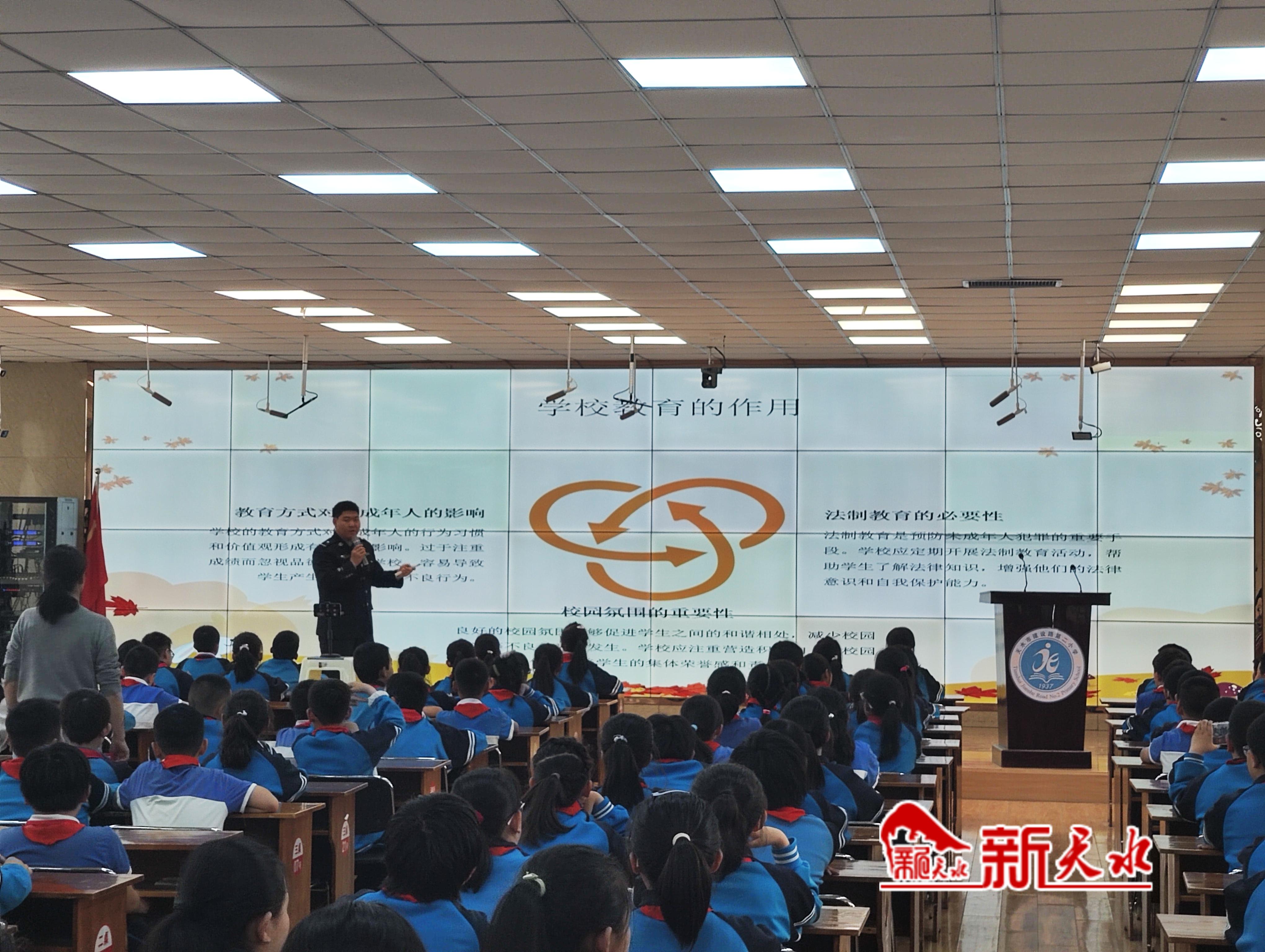 随后,天水市公安局秦州分局东关派出所民警结合青少年身心特点,围绕法律法规,通过“案例+法条”的形式,深入浅出地讲解校园欺凌、网络诈骗、毒品犯罪、聚众斗殴等未成年人常见违法犯罪行为的法律界定及危害,并精选出近年来办理的未成年人违法案件,制作成了警示教育片。