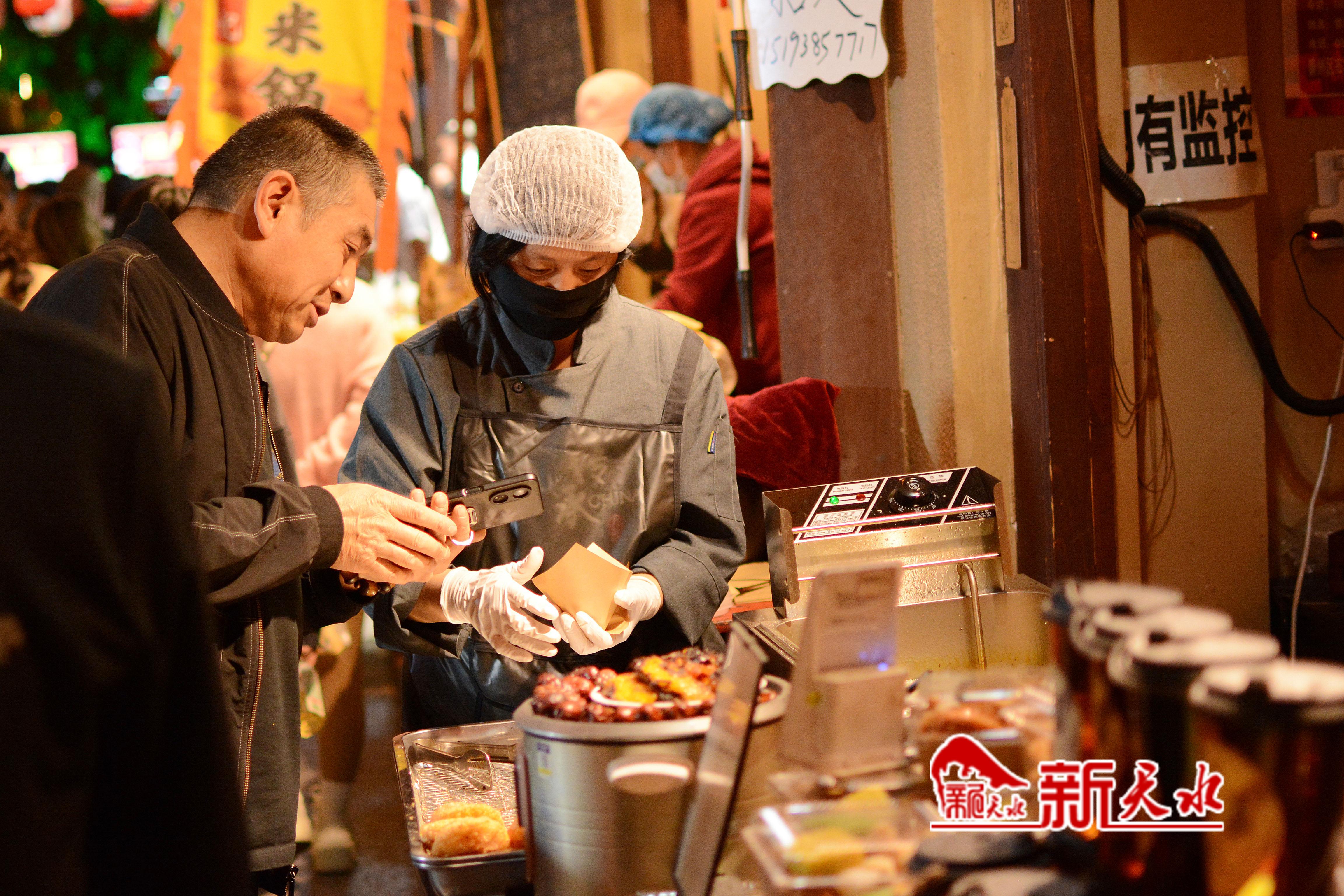 位于自由路的“秦州食光”是新建成的美食街区,每到夜幕降临时便热闹非凡。所有摊位统一采用电能烹饪设备,升腾的热气中不见一丝煤烟。