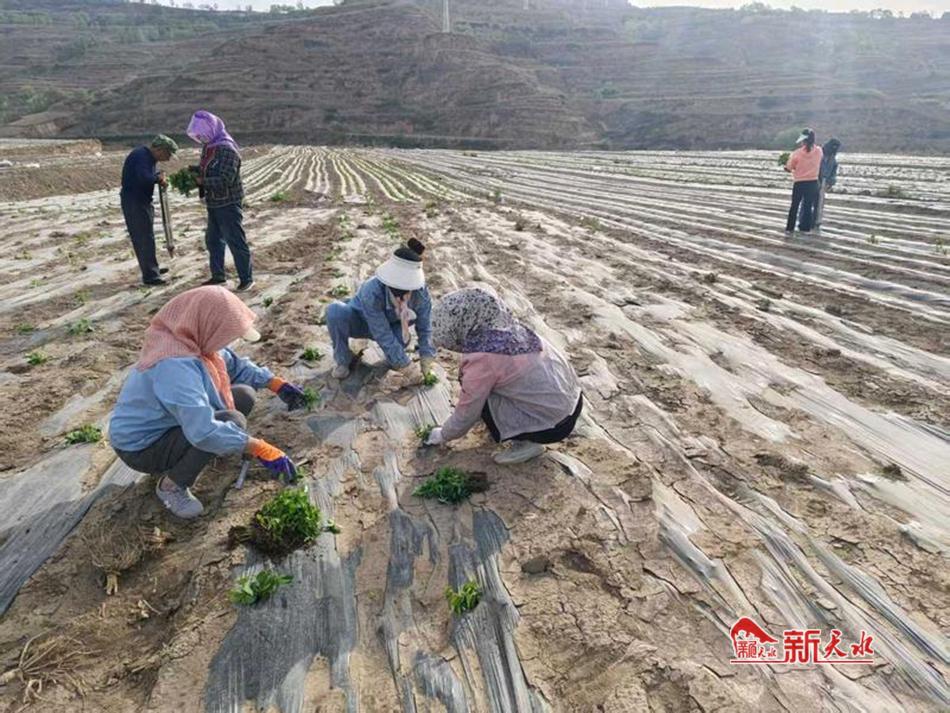 新天水讯 时下正值辣椒移栽的好时节,连日来,辣椒移栽工作在甘谷县八里湾镇种植基地全面铺开,农户抢抓晴好天气,忙着为辣椒幼苗搬“新家”。