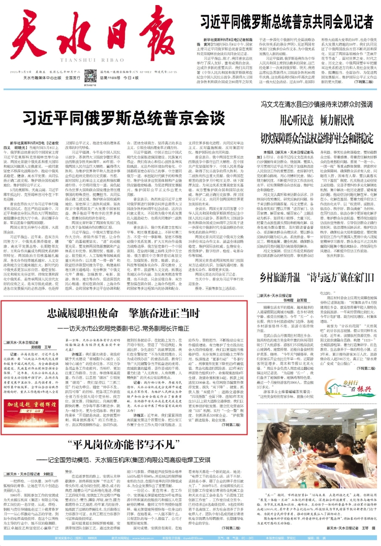 1、凡注有“新天水讯”的稿件,均为天水日报社版权稿件,未经许可不得转载或镜像;授权转载必须注明来源为“新天水”,并保留“新天水”电头。