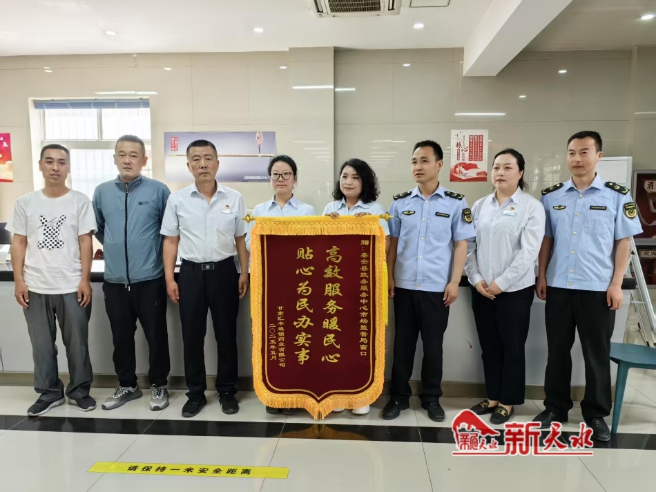 新天水讯【记者 辛闻】5月20日,一面印有“高效服务暖民心 贴心为民办实事”的锦旗被送到秦安县政务服务中心市场监管窗口,这面锦旗不仅承载着办事群众的真挚谢意,更是对市场监管窗口高效服务、暖心助企的充分肯定。