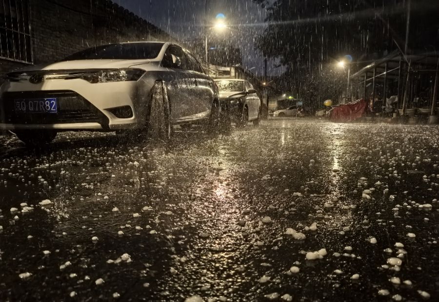 5月13日,北京西城区突降冰雹。新华社记者 李贺 摄
