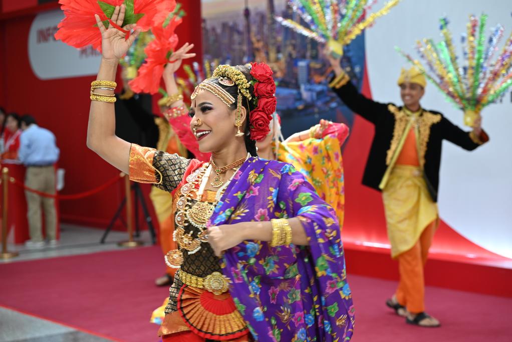 5月27日,马来西亚参展人员在展会现场为观众带来传统舞蹈表演。新华社记者 陈爱平 摄