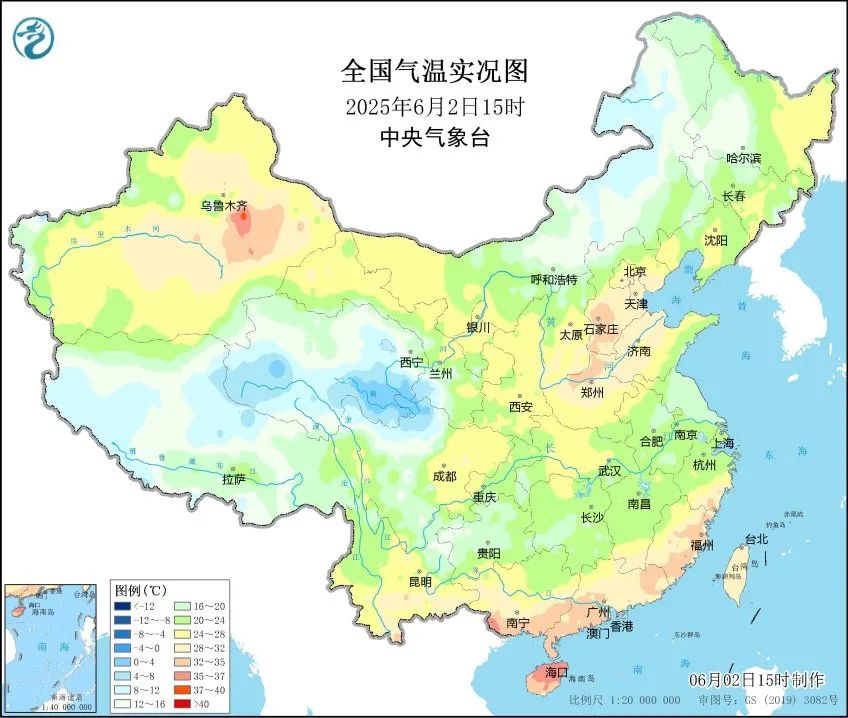 6月2日,南方的降雨区域南压,长江中下游一带降雨停歇,气温止跌,但仍然维持在偏低状态,午后多地气温都不足25℃。而与此同时,华北中南部30℃+的地方明显增多。