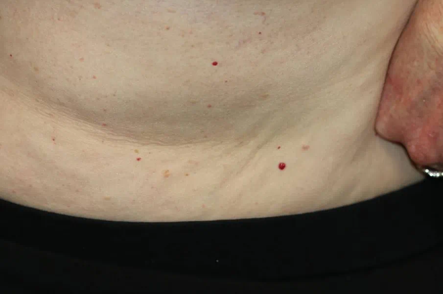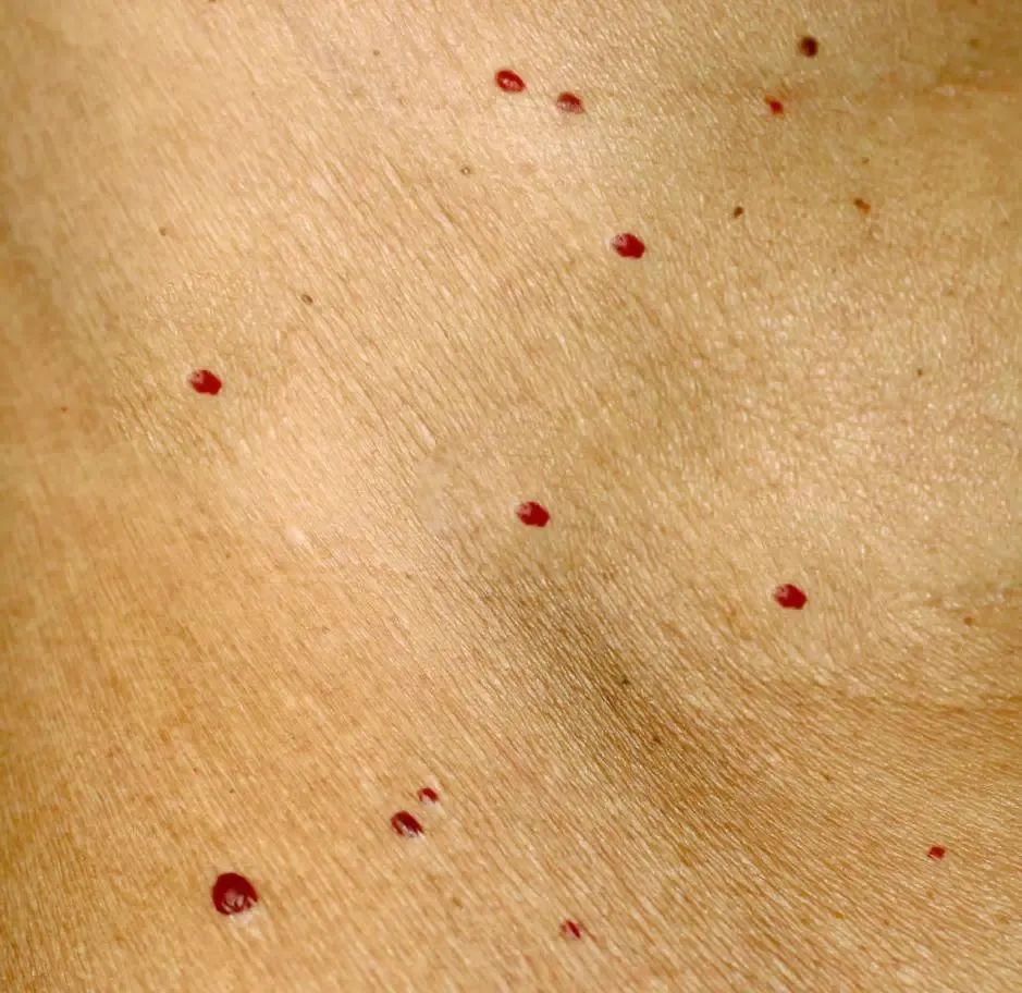 还有人皮肤长红痣,就像下图这样的小红点,这到底是什么问题?